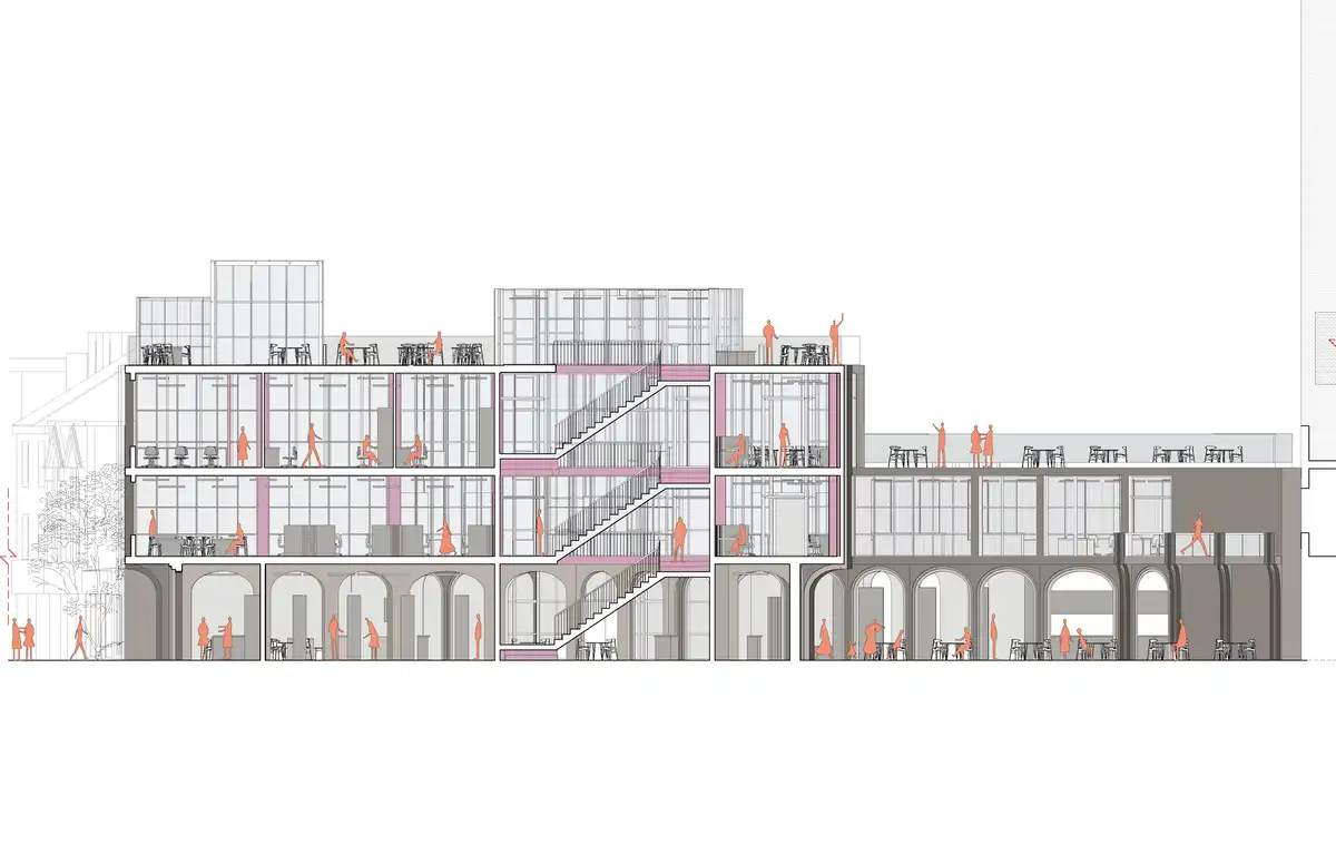 ‘We developed, amended and resubmitted the plan’, Jim Richards, Director of Nissen Richards Studio explained, ‘retaining original structures and respecting the footprint of the original planning document, whilst conceptualising a new materials strategy.’