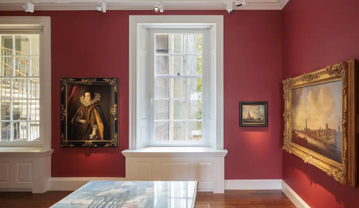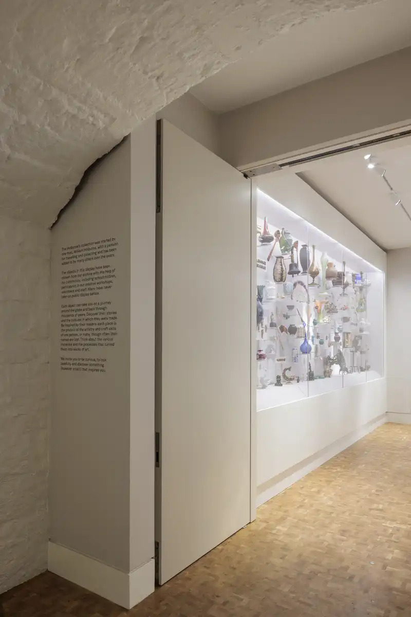 - The architectural concept for the lower-ground level gallery was to evoke the atmosphere of an intimate treasure chamber—an immersive space of curated wonders. At first-floor level, a new gallery space has been created through the transformation of a former office, returning the space to its historic function as a gallery.