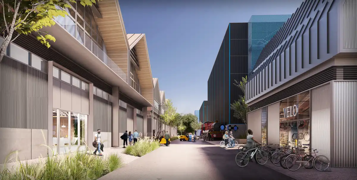 The overall development has been split into several ‘clusters’, each with its own amenity buildings serving those who work on the site. Smaller-scale workshops, innovation labs and offices have been strategically positioned to aid the screening of the larger studio buildings, particularly at the site perimeter, helping to reduce the visual impact of the scheme. The pitched and ‘saw tooth’ roofs of the workshops and offices act as visual counterpoints to the ‘larger’ rectilinear, flat-roofed studios.