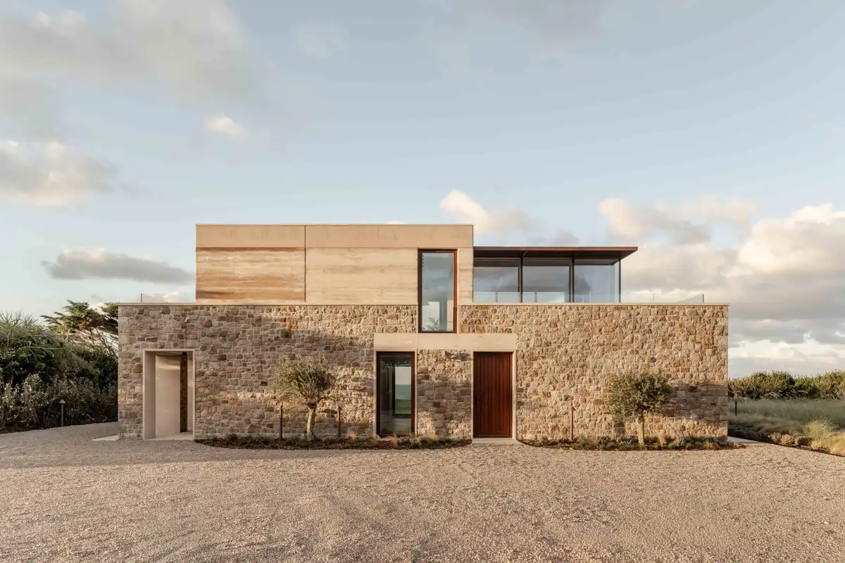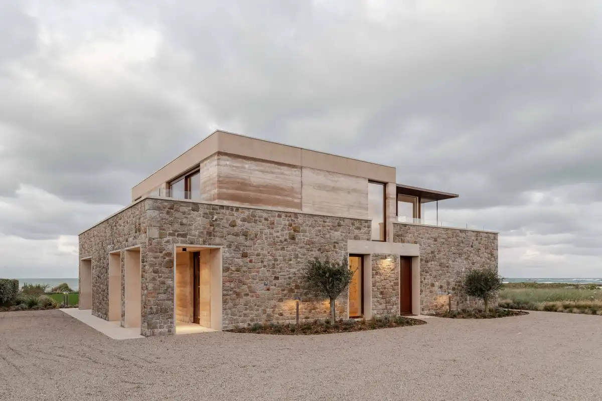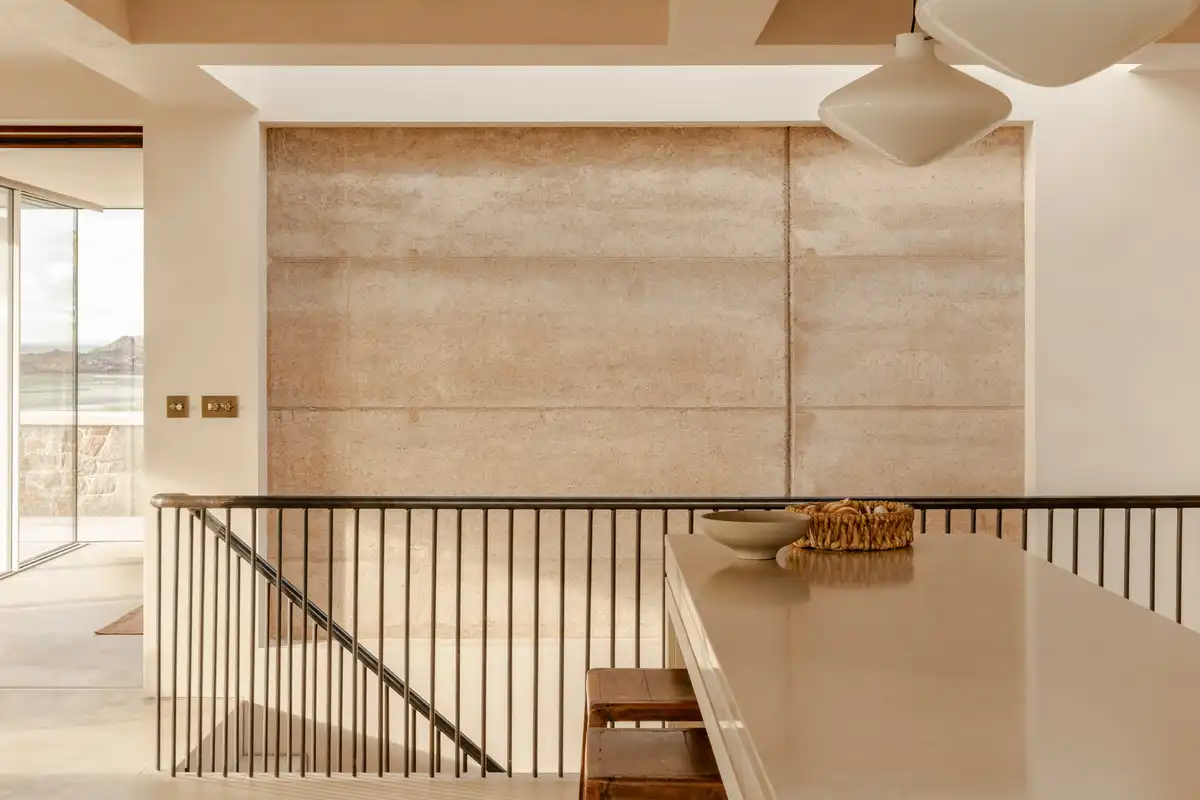 Designed for a returning resident after several years living in London, the house departs from the island’s conventional architectural language. It embraces a contemporary, elemental character, expressed through rammed earth and locally quarried granite; materials drawn from the landscape itself and chosen to resist the island’s fierce coastal conditions.