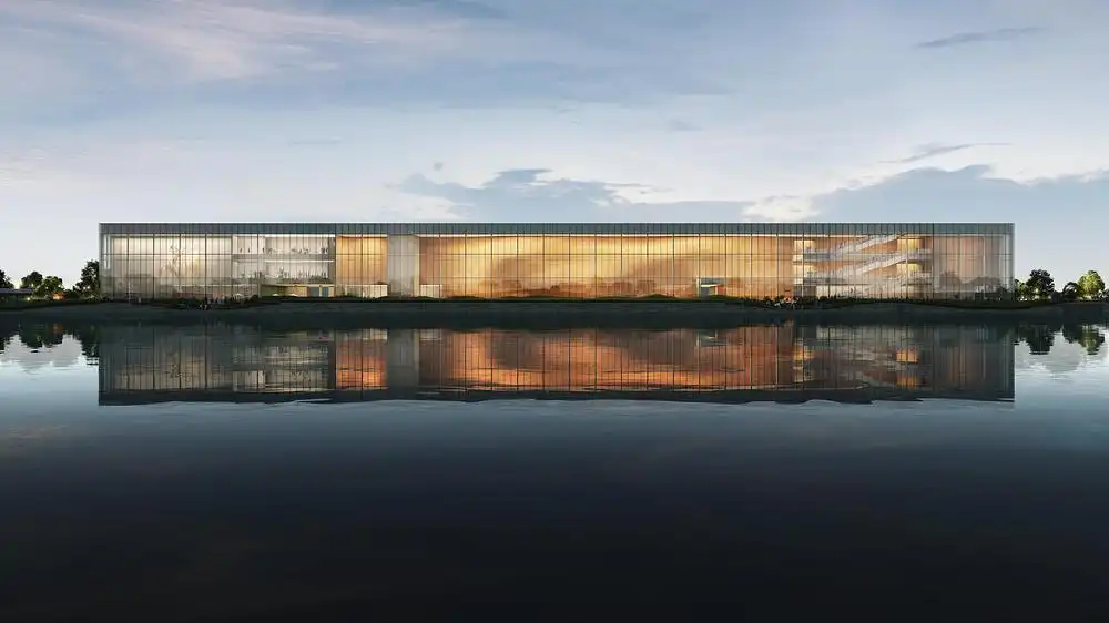 Museum (permanent and temporary exhibition halls), performance hall, public plaza, waterfront dock, flexible event and cultural spaces