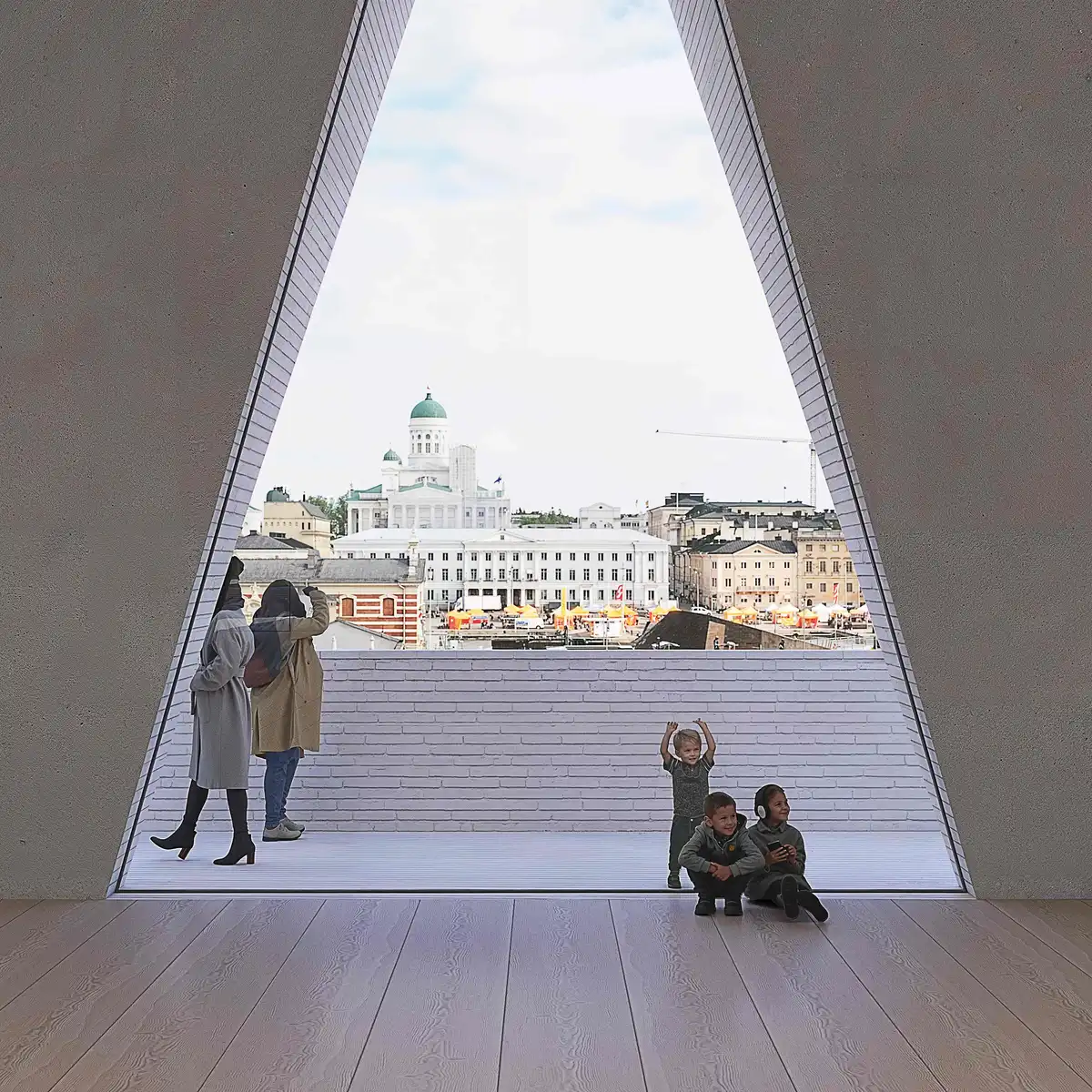JKMM Architects’ winning entry answers the competition brief by proposing a new 10,050 sq m museum building that will meet the urban opportunity of this prominent site and deliver on the Museum’s goal of being a flexible, inclusive, and welcoming space for Helsinki’s residents and visitors. The competition jury commended the design for its characteristic of sitting harmoniously within the surrounding urban fabric, while still standing out as an original and clearly identifiable public building.