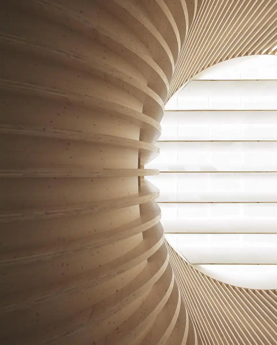 The project has been guided by the objective of minimizing climate impacts over a long lifecycle and making the best use of renewable resources and materials. The building’s above-ground structures utilize standard, industrial, prefabricated Stora Enso massive wood products customized for pioneering structural and architectural solutions.