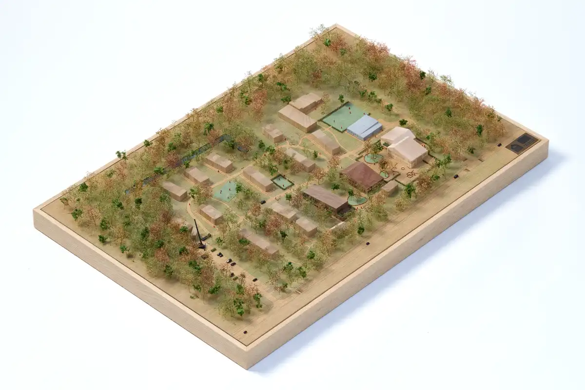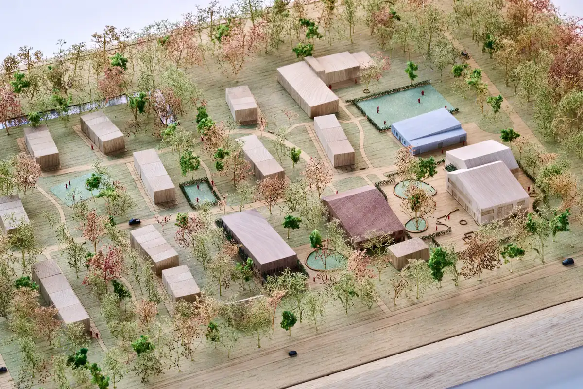 The Oisterwijk reception center, which has hosted refugees since 1990, serves as the pilot site for the HoutKern method. As part of its refurbishment, new facilities built with the system – including an office, activity center, school, and storage facility – will be added, serving up to 450 residents. Each building is designed to enhance daily life, featuring distinct color palettes for intuitive wayfinding, generous glass openings, and wooden façades that convey warmth and security for both residents and the surrounding neighborhood.