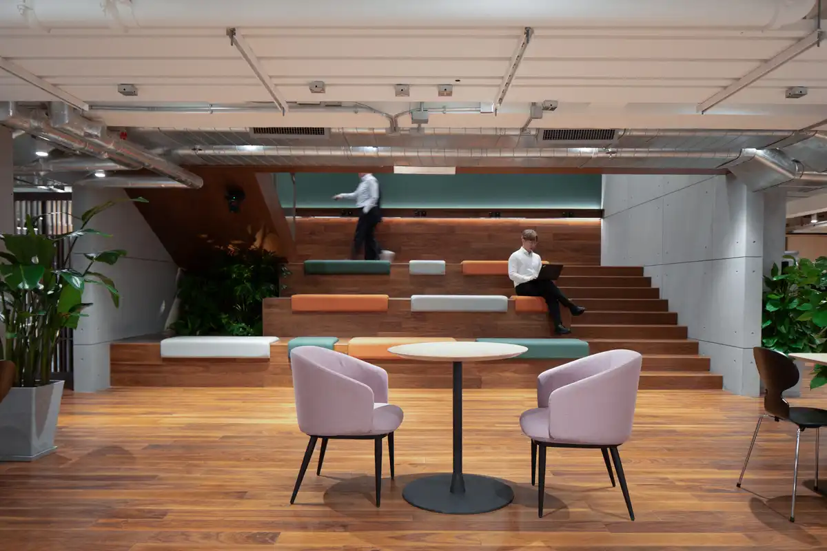 One marker meeting space is Social Hub, a semi-open amphitheatre-like area that invites all forms of collaboration from presentations to sharing sessions across its multiple tiers of seating. And if team members need time to recharge, they can head to one of the Wellness Rooms. These softly lit spaces feature relaxing tactile materials and comfortable furniture perfect for relaxation, plus enough space to do some calming yoga.