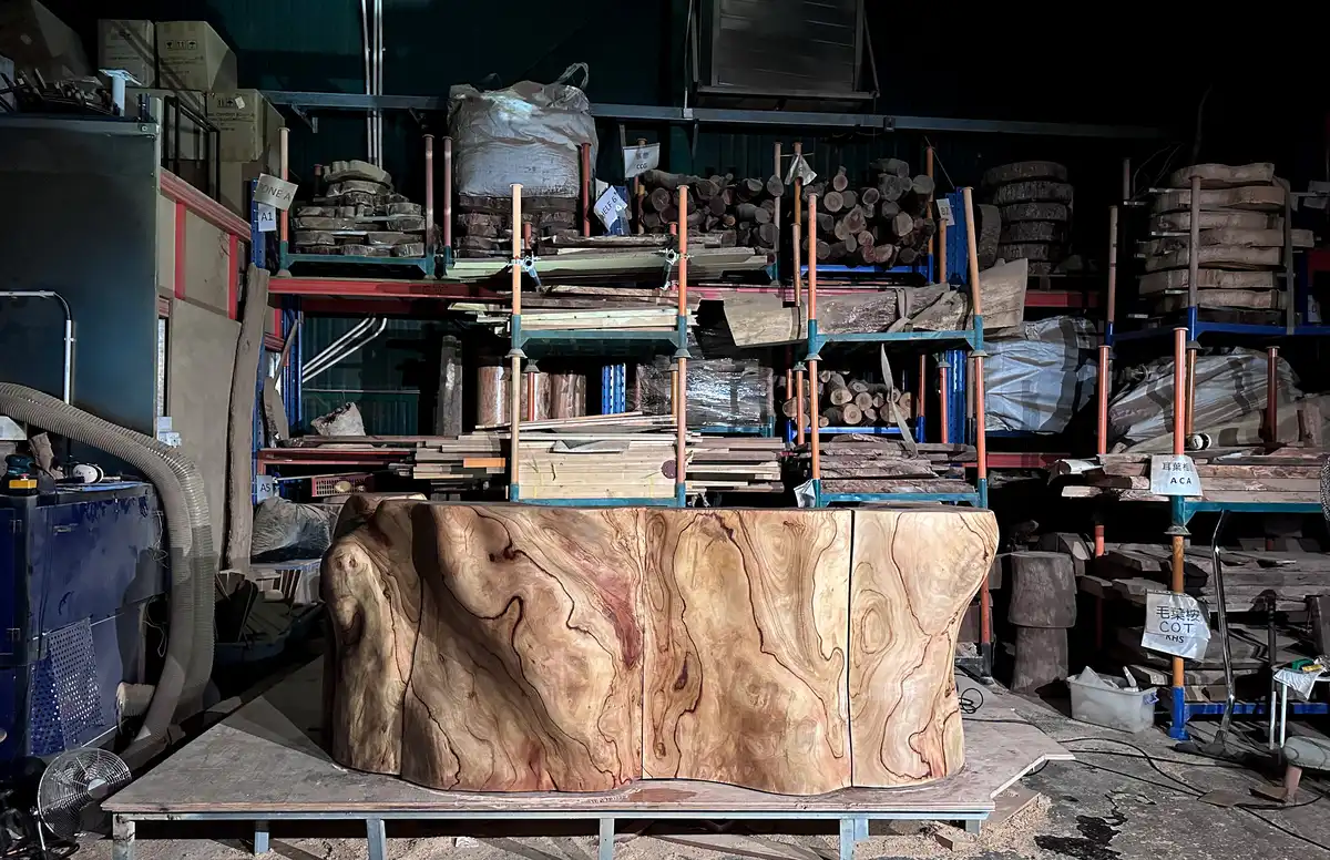 After assembling the wood using precise 3D scanning to create the sculptural form, artisans then sanded the wood to bring out the natural beauty of its grain