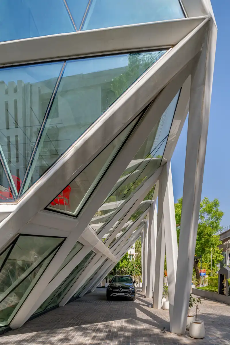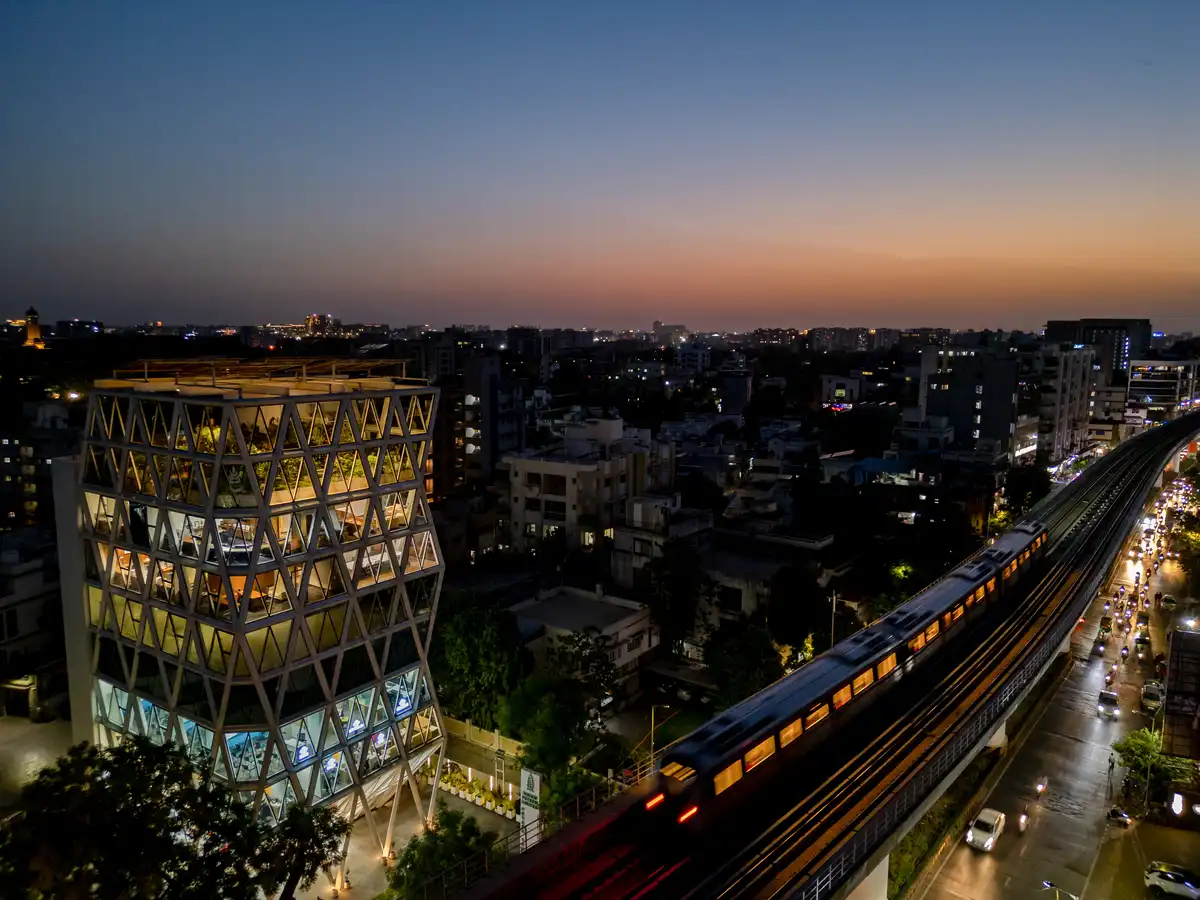 The distinctive facade not only serves as a striking visual feature but also embodies the company’s commitment to innovation and efficiency, with its distinct identity effortlessly recognizable amidst the urban landscape of Ahmedabad.