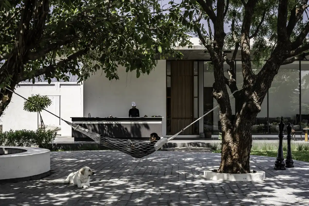 The Banyan Farm was envisioned as a simple, open-plan home designed to encourage family time and slow living. Conceived as a relaxed retreat, it fosters an atmosphere of togetherness with an emphasis on shared moments. Outdoor cooking plays a central role in the experience, drawing directly from the adjoining farm where the family grows their own vegetables, bringing a true farm-to-plate lifestyle into the heart of the home.