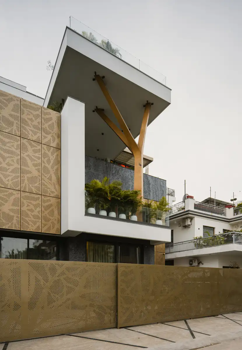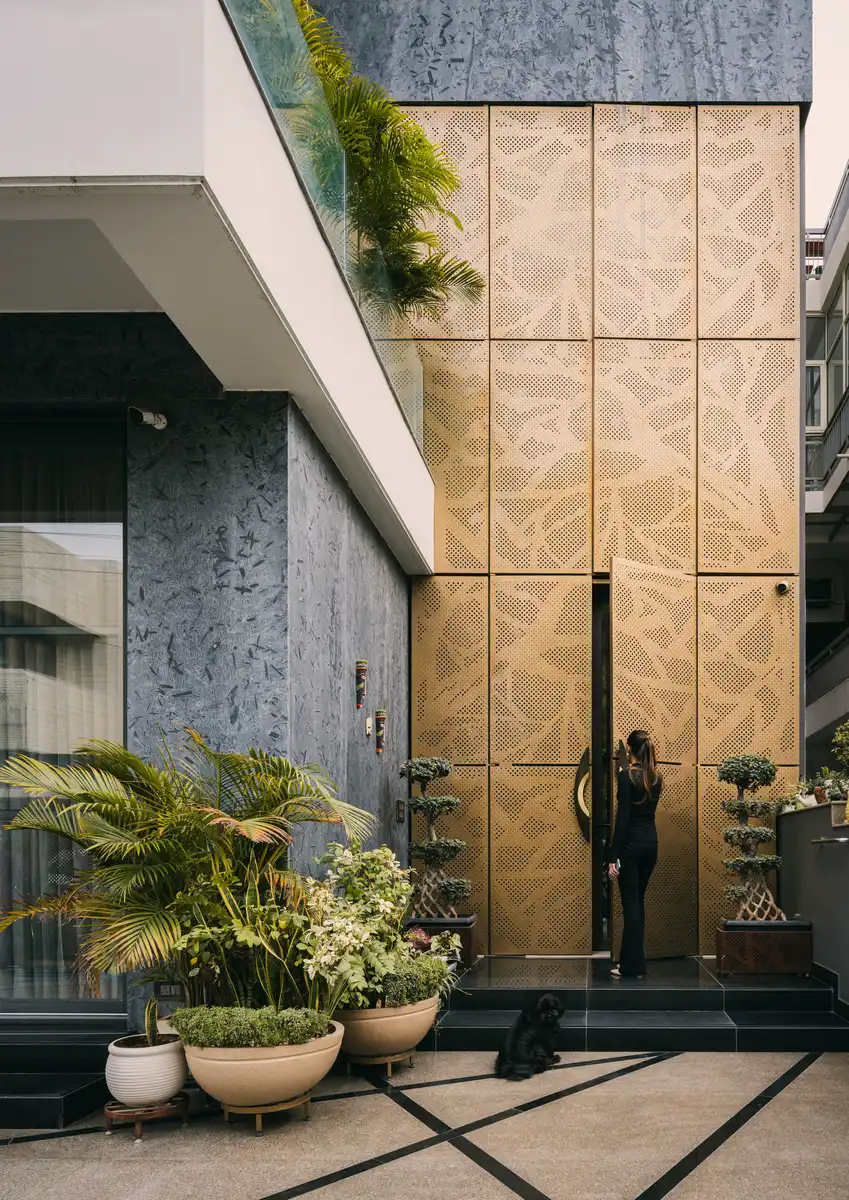 This element doesn’t just make a visual statement; it becomes a functional skin that filters the intense southern sunlight, casting dappled light into the interiors while enhancing airflow and thermal comfort. The interplay of light and shadow across the day evokes the feeling of being nestled under forest shade — a quiet, calming experience amid the city.