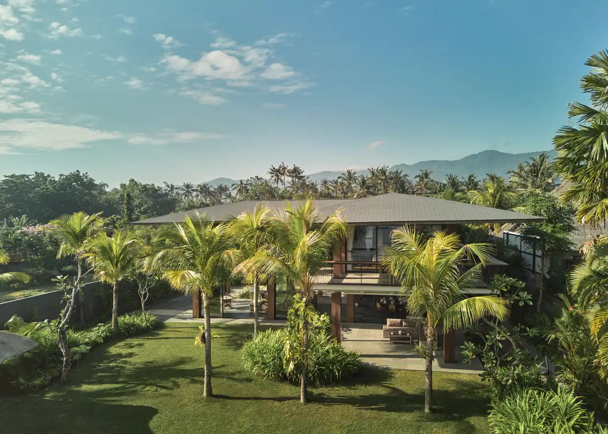This 3-bedroom home for a musician-composer views out over lush green rice paddies and coconut trees.