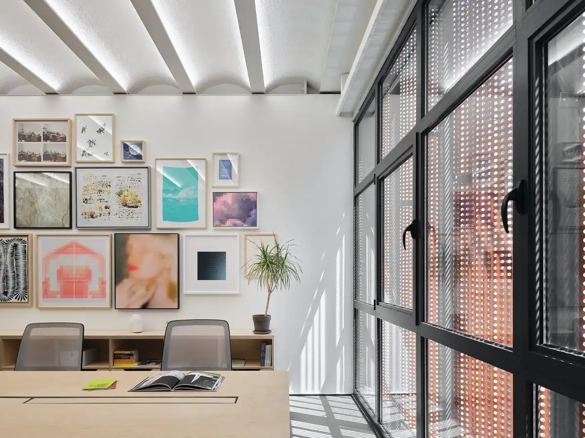 SANATORIUM’s founder, Adnan Yerebakan, commissioned renowned Turkish architect Nevzat Sayın to design the new Basilica-style building. Located in Perşembe Pazarı, a neighborhood historically known for its small workshops and ship part ateliers, the structure features a veil-like reddish-brown façade. Inspired by the nearby historic “Arab Mosque,” the façade’s appearance shifts with the light throughout the day, becoming illuminated after nightfall.