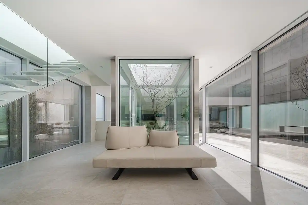 Each room on the second floor has its own outdoor space. The natural light coming in through the glass walls is sufficient and comfortable, and the indoor space connected to the terrace feels open and airy.
