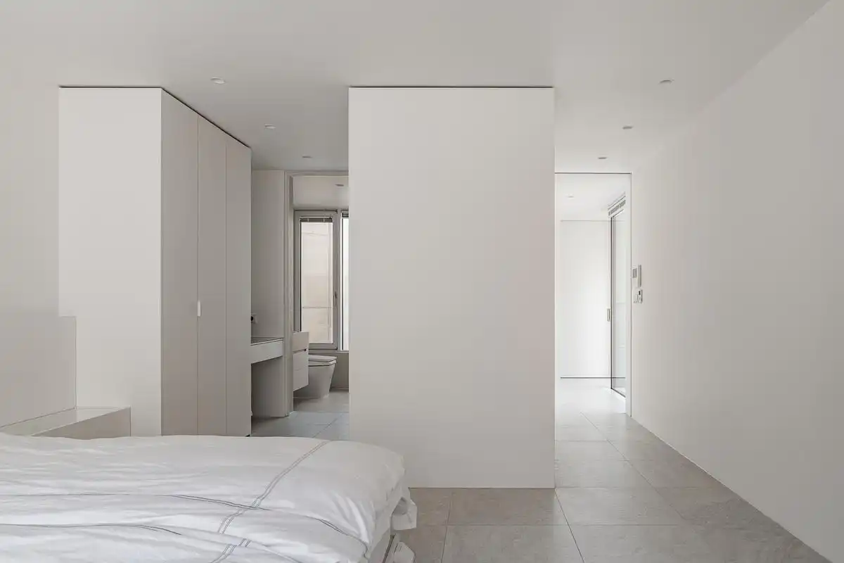 The walls separating the rooms on both sides are made of lightweight, adjustable drywall rather than solid concrete, allowing for future changes in family composition and spatial layout.