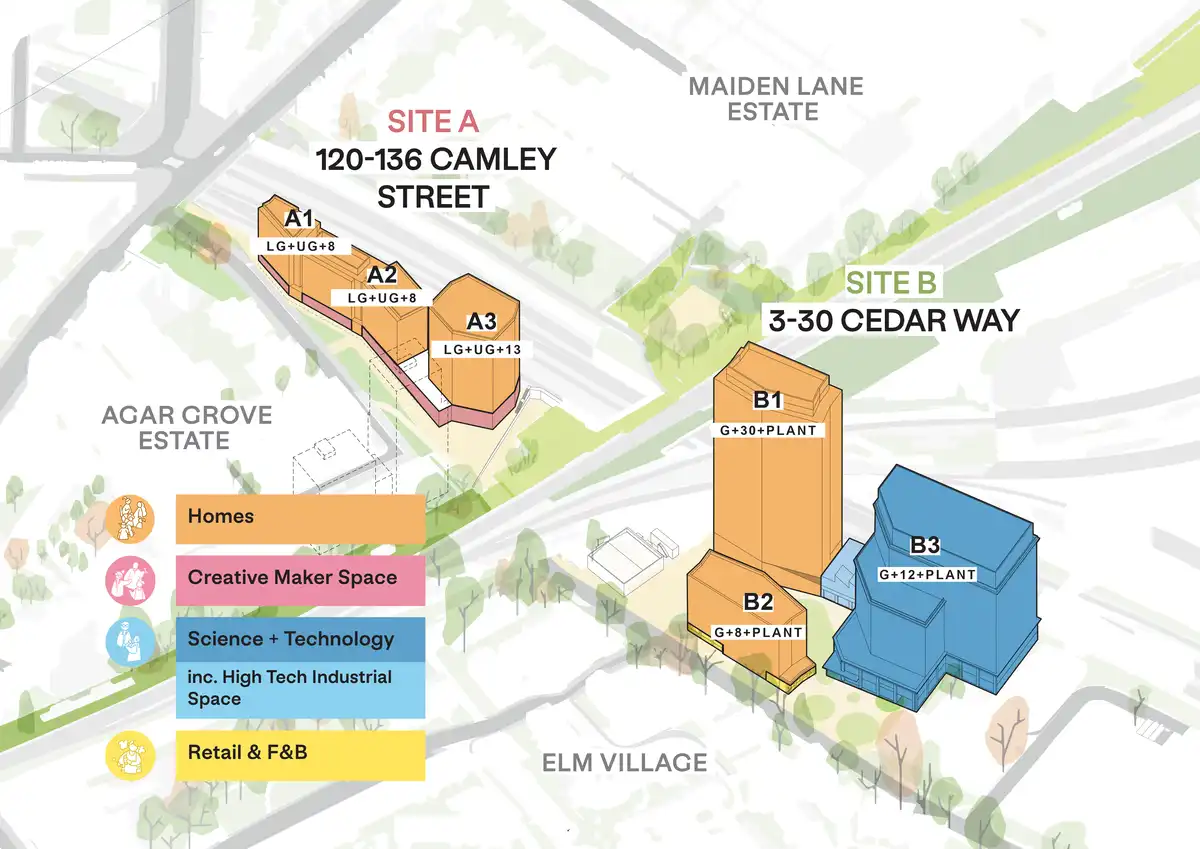 The consented scheme brings together two brownfield sites to create a new, well-connected neighbourhood delivering 401 new homes, 50% of which will be genuinely affordable. The development will also provide new employment space, community facilities and high-quality public realm, supporting Camden’s commitment to inclusive growth and long-term investment through its Community Investment Programme.