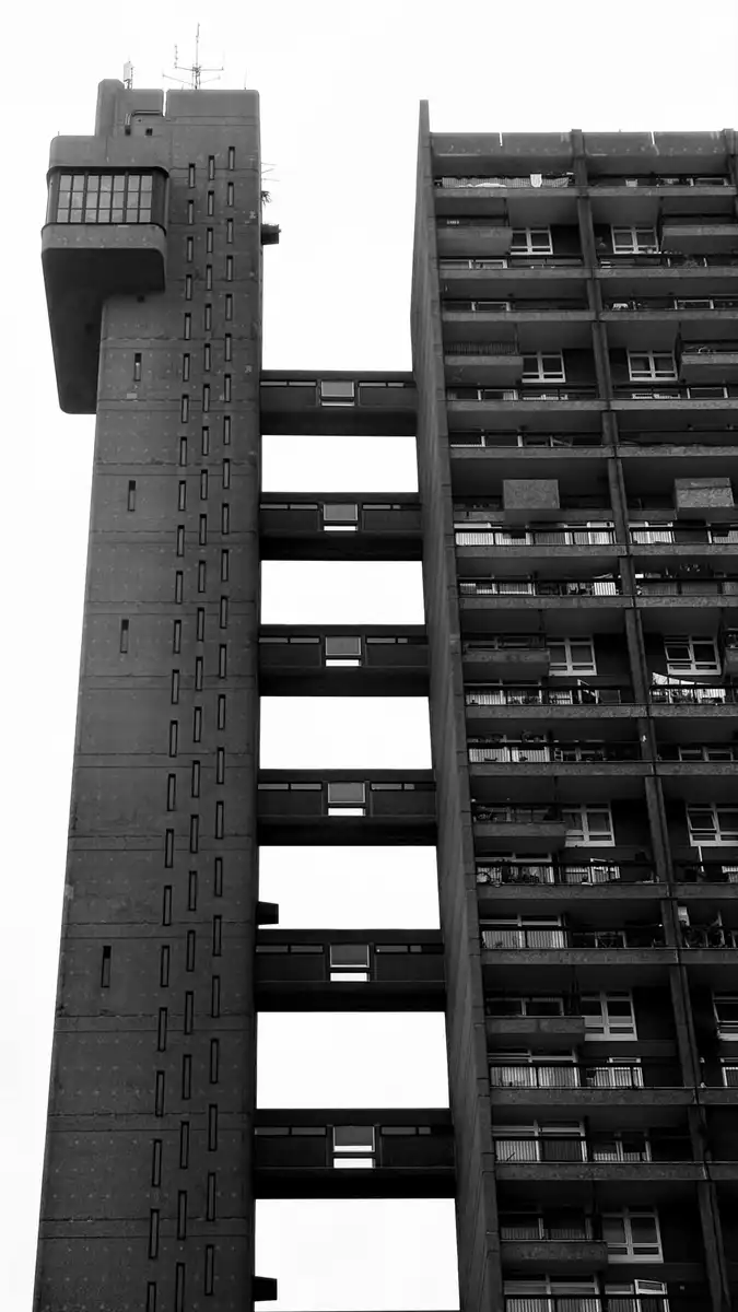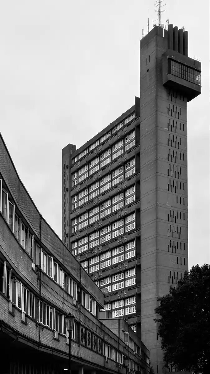 This Grade II* listed tower block on the Cheltenham Estate opened in 1972. This Modern building was commissioned by the Greater London Council and designed in the Brutalist style by architect Ernő Goldfinger.
