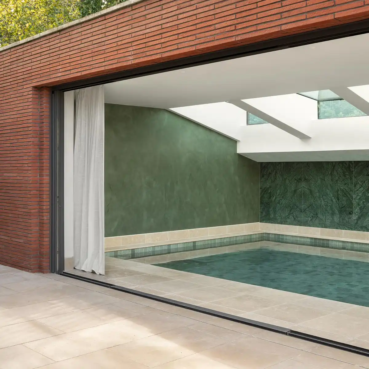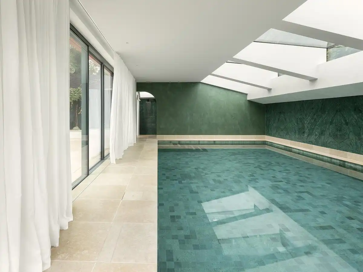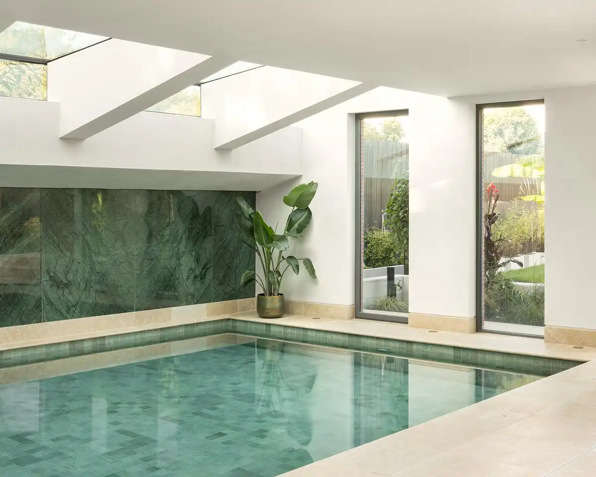 Pool Pavilion, is a garden outbuilding in London, that hosts a heated indoor swimming pool, hydrotherapy jets, a changing room and shower area.