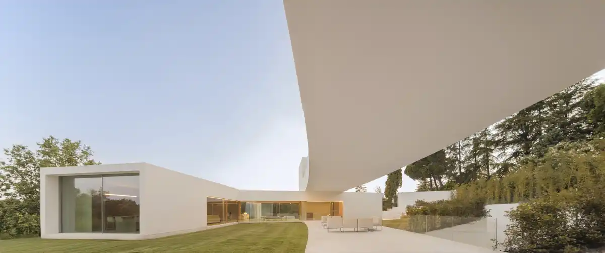 Se propone una arquitectura que se entrelace con el jardín, ampliando al máximo el perímetro de contacto con el paisaje y diluyendo los límites entre lo construido y lo natural. En este enclave de Madrid, esa relación con el entorno adquiere un valor singular. Para lograrlo, se renuncia deliberadamente a una volumetría compacta y se adopta un trazado ascendente que evoca ciertas obras de Alfaro. El proyecto aspira a resolver una dicotomía: ser a la vez geométrico y orgánico. Aunque su estructura es precisa, el habitante la percibe como algo natural, casi como si se hubiera acomodado de manera aleatoria al lugar.