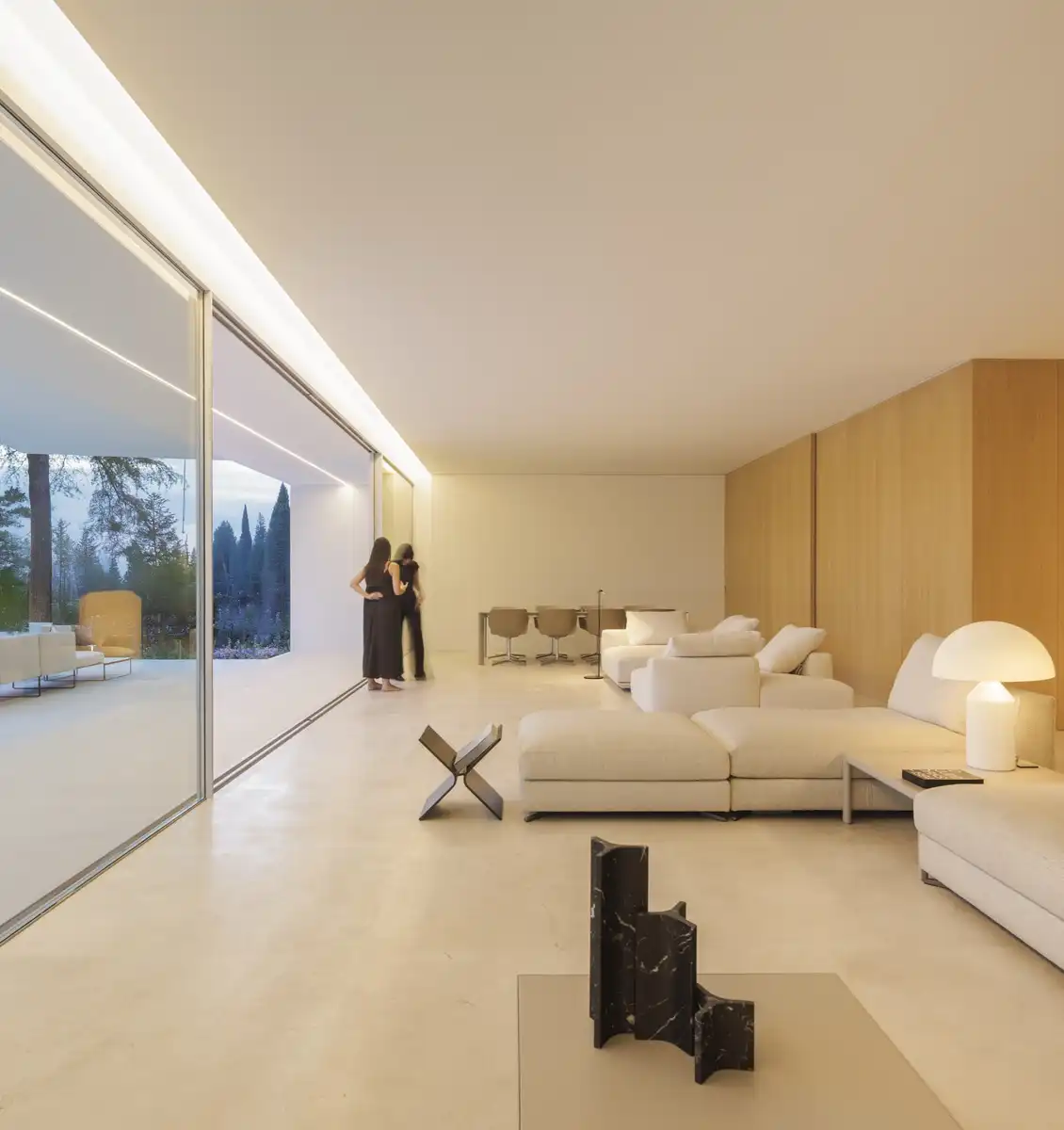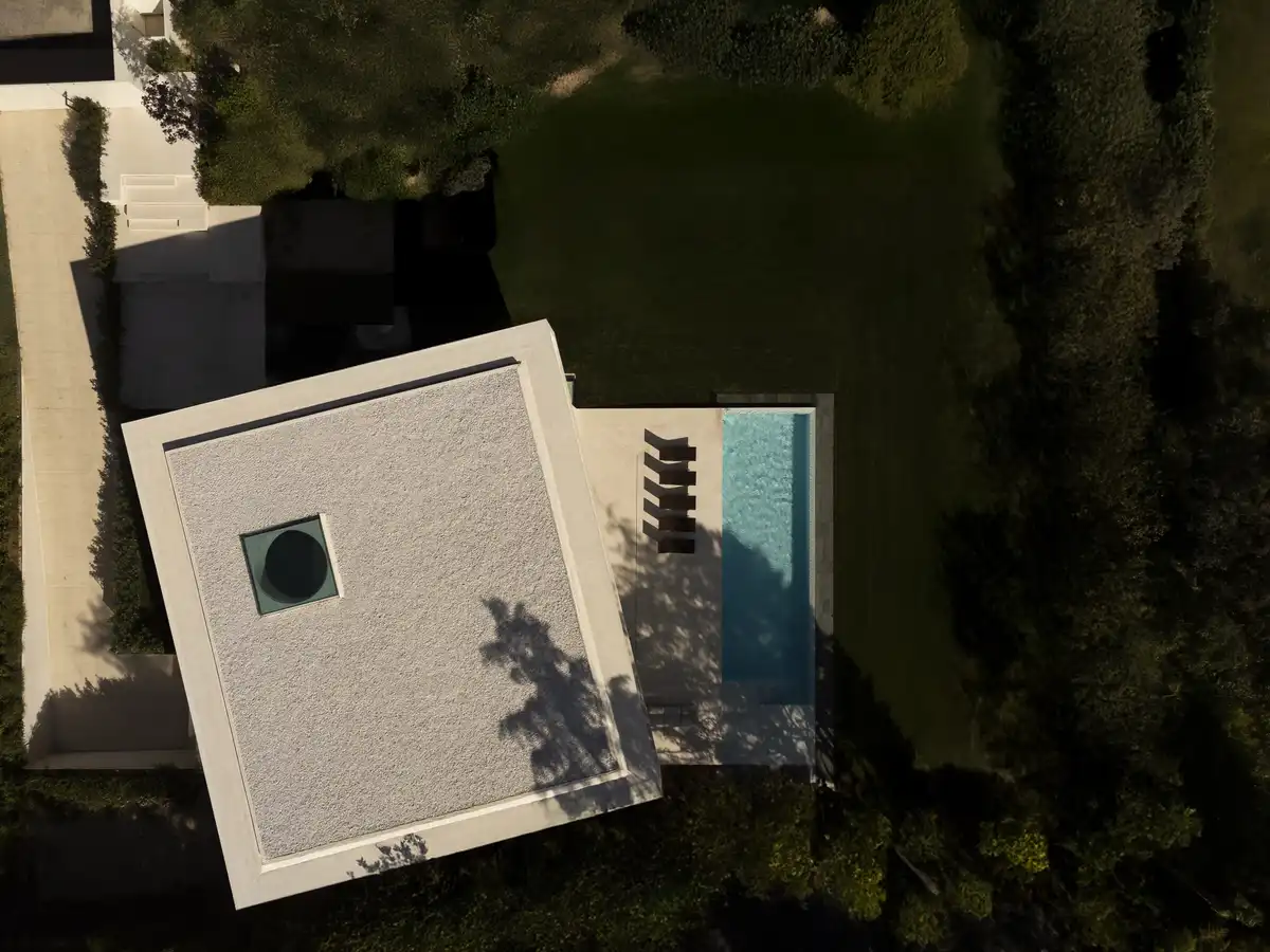 Villa Lavan is a residence composed of two single-story, elongated volumes, conceived to bring a human scale to the whole. These volumes are slightly rotated in relation to one another, a strategy that responds to three main reasons.