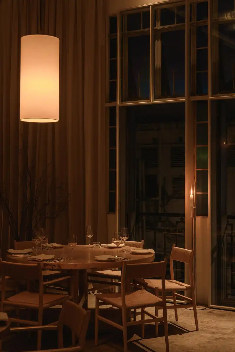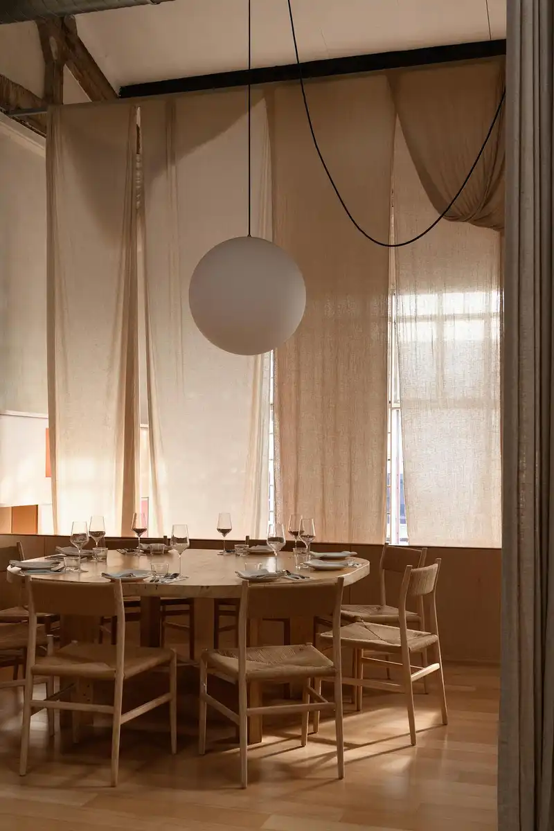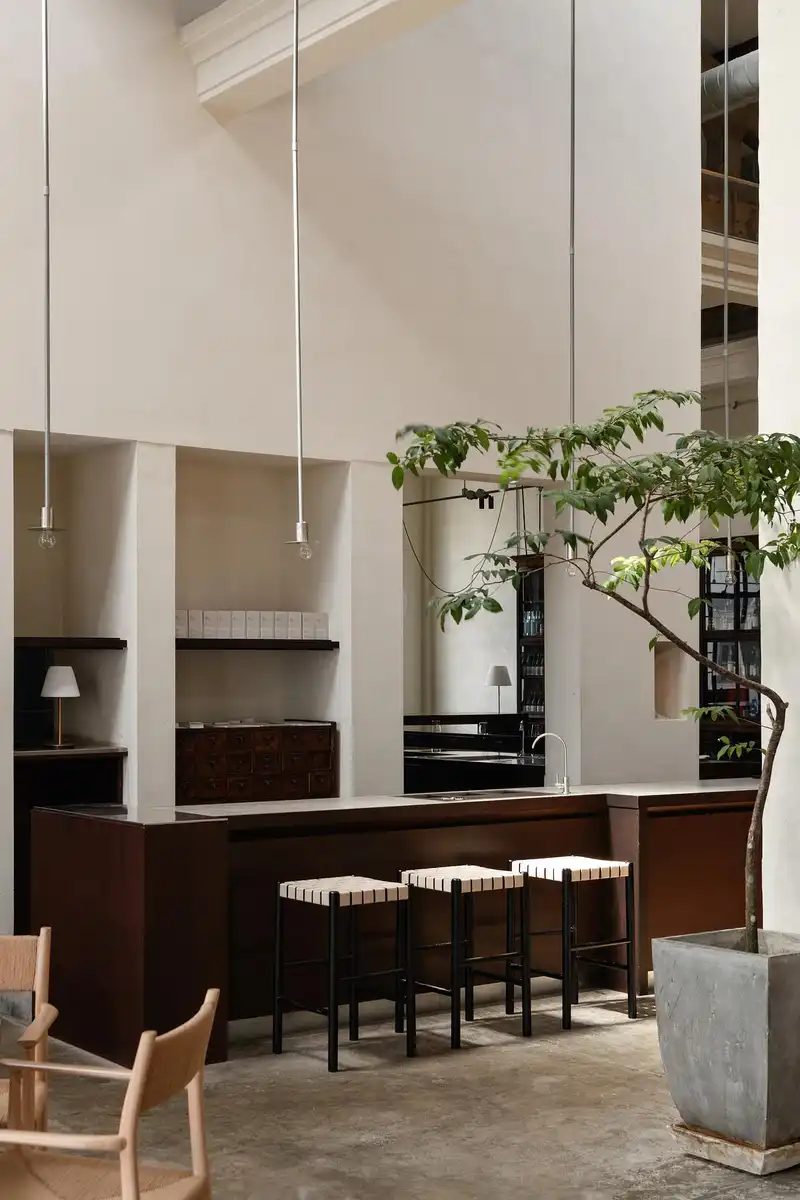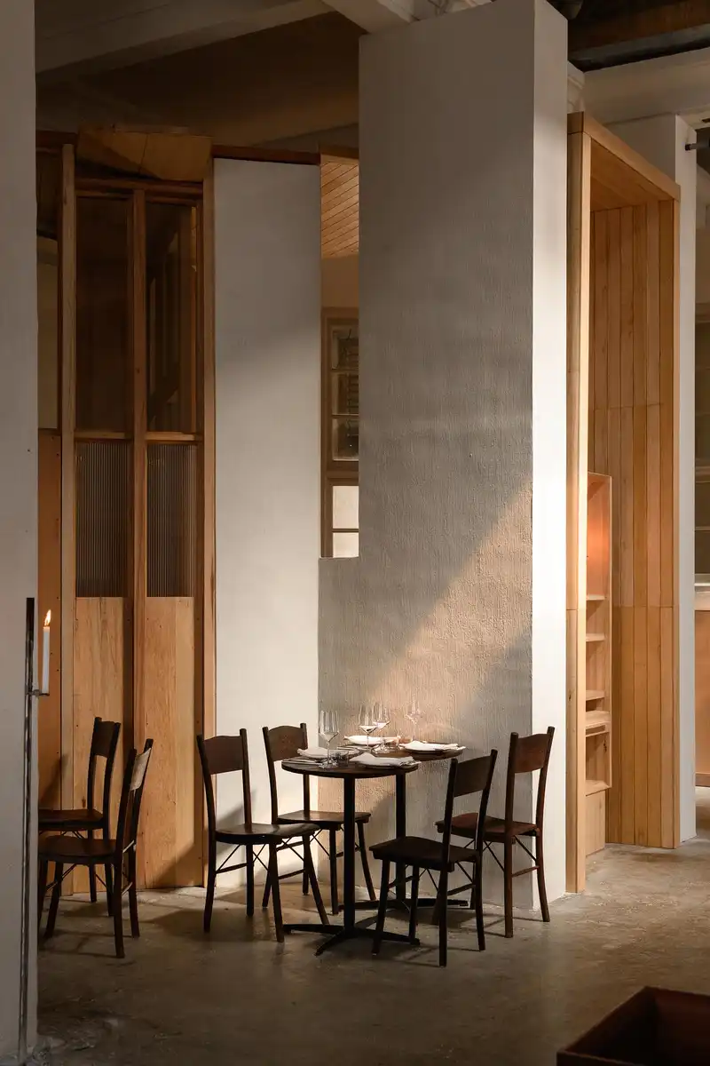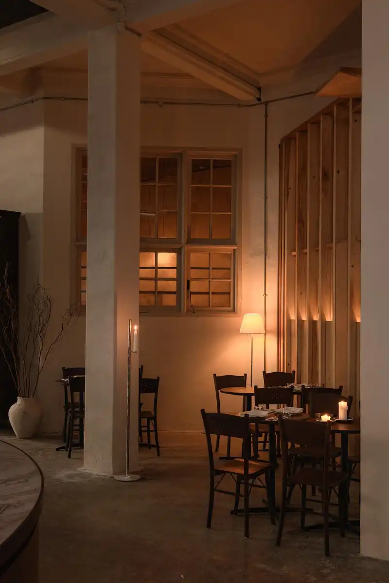 The restaurant draws inspiration from Penang’s layered cultural history and coastal rhythm. Materials are kept honest: reclaimed wood, limewashed walls, handmade ceramics. The palette is muted, calming, with occasional accents that nod to Straits Chinese traditions in subtle, abstract ways.