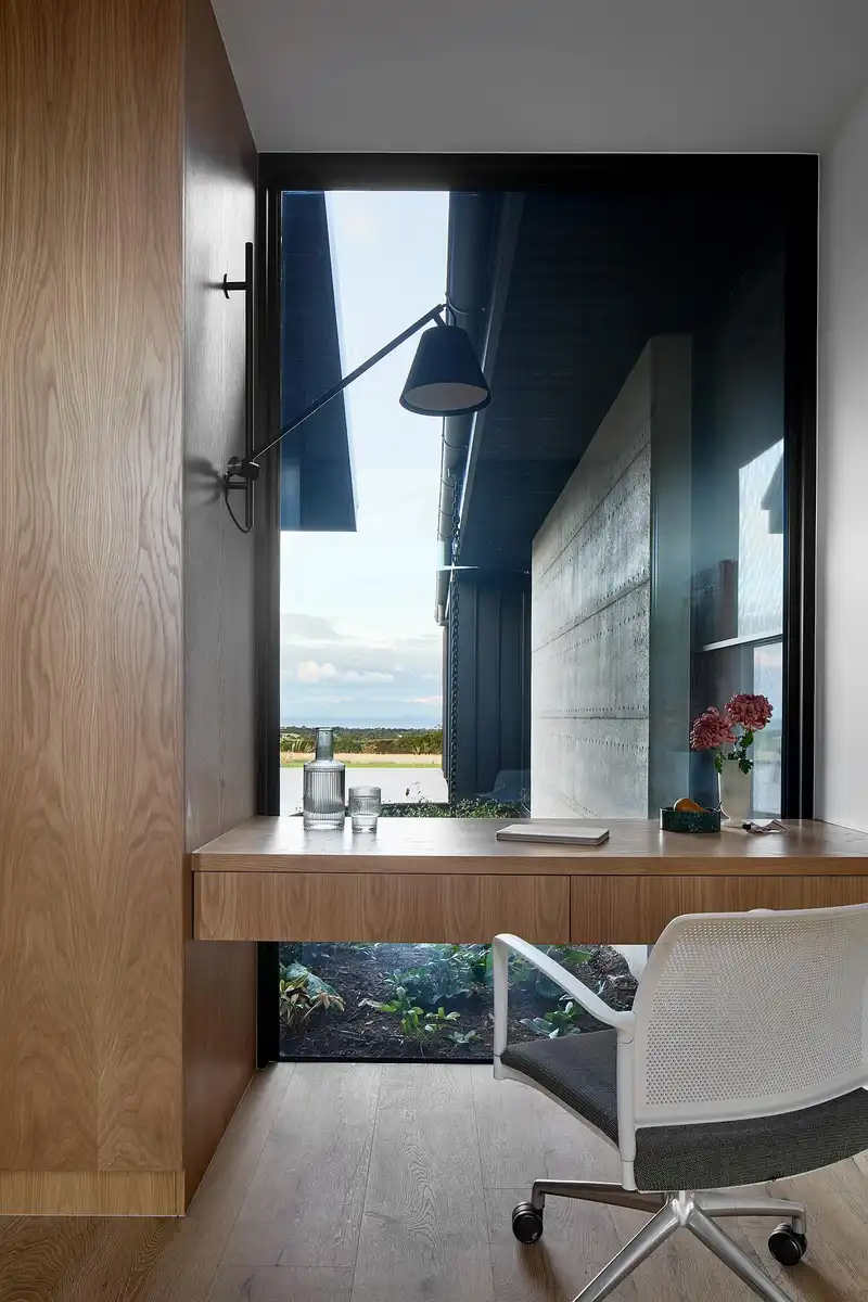 Located within Melbourne’s Bellarine Peninsula, the site is comprised of three main forms that all serve their own purpose, not dissimilar to the formation of out-buildings within a farm. Throughout, a clear emphasis on craftmanship and integrating handmade elements was crucial, as well as longevity and robustness befitting the location. Embracing and celebrating natural materials, the result captures a sense of place and an honouring of locality through a curation of Australian-made fixtures, artwork, sculptures, and lighting.