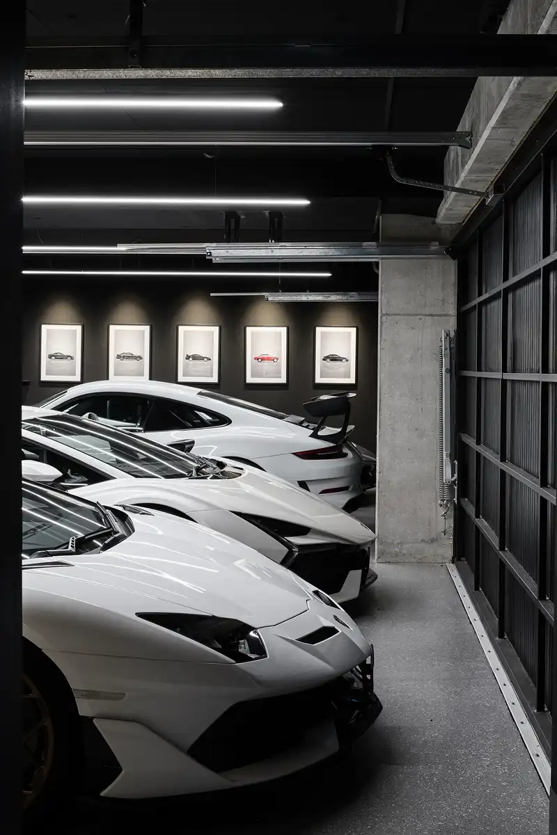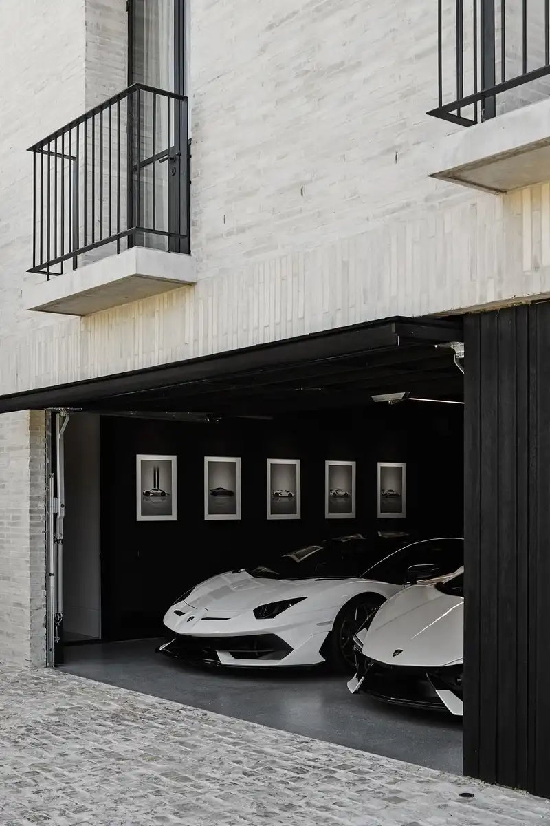 An extensive garage and workshop houses the client’s luxury car collection, extending the project’s narrative of lifestyle indulgence and design precision.