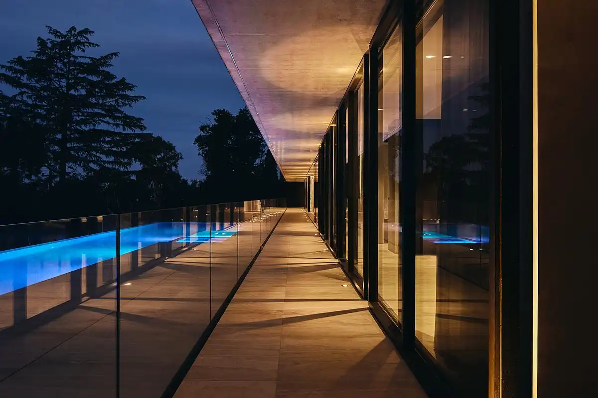 Planar elements and robust materials – concrete, glass and stone – are consistent with FGR’s design vocabulary of simplicity and bold spatial rhythms. A generous floor to ceiling height of 3.1klfkfkf m throughout is emphasized with soaring, full-height doorways combined with flush, operable floor-to-ceiling glazing. The result is a flowing spatial quality, encouraging easy occupant circulation and air movement throughout all zones.