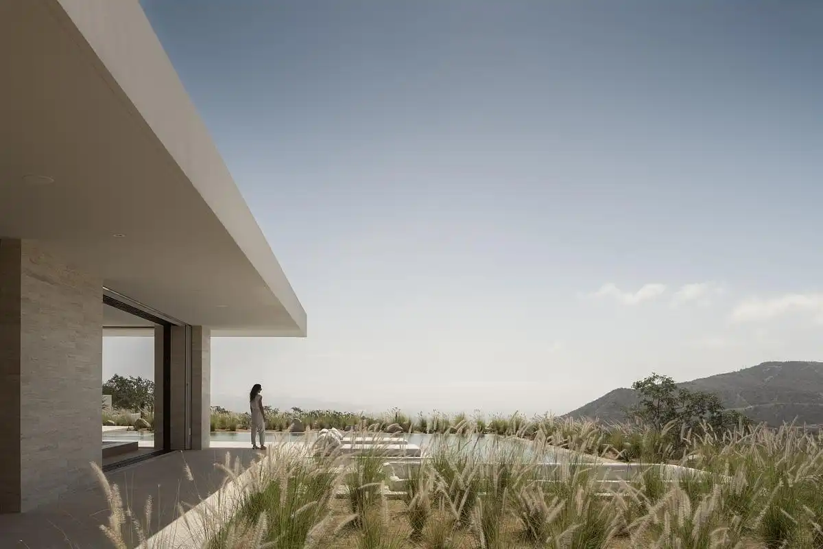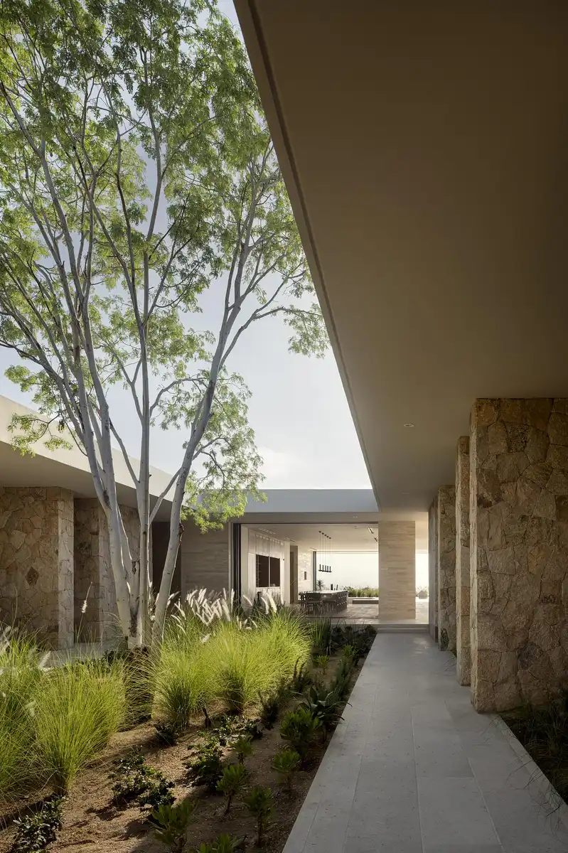 The house unfolds into three wings connected by a longitudinal axis that naturally traverses them. Two of these house five bedrooms, linked by a desert garden that invites movement, encounter, and contemplation, and which culminates in the social wing: the heart of shared life.
