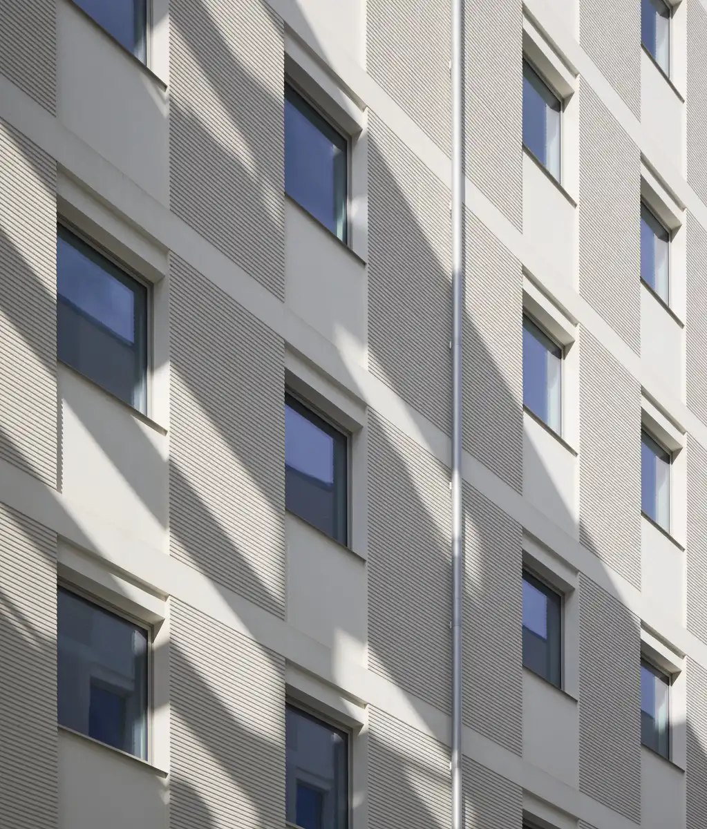 Sustainability was considered at every stage—from site and landscape design, to material selection, to construction methods. The new residences feature prefabricated façade panels, which accelerate construction and reduce waste. These panels are fabricated with a mass timber substrate, lowering the carbon impact of construction.