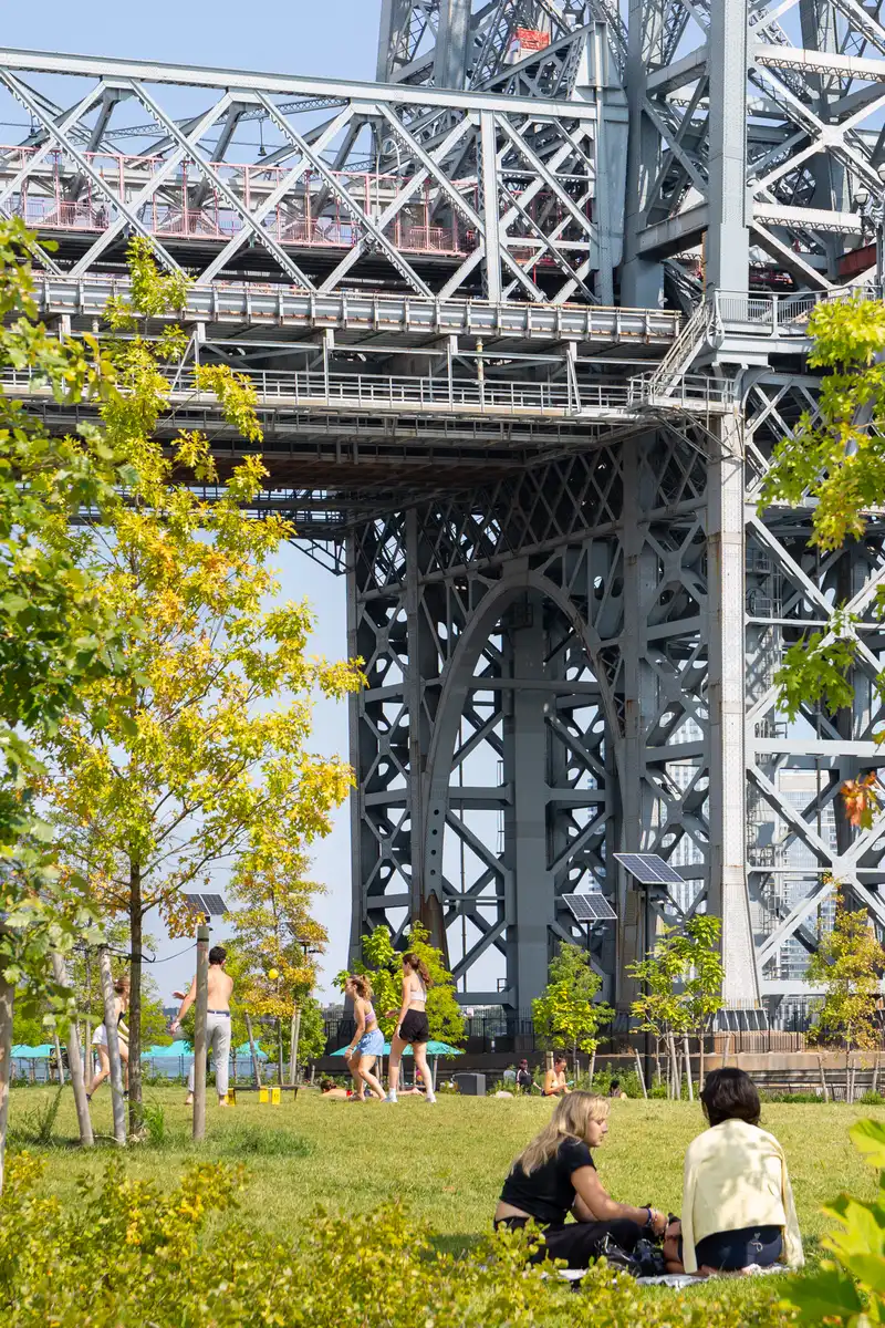 Following the completion of ESCR’s first phase in 2024, the coastal redevelopment continues with the reopening of several major sections within East River Park around the Williamsburg Bridge. Elevated an average of 8-9 ft to provide vital flood protection, the park has been infused with 600 new trees and over 21,000 shrubs, grasses, and perennials – strengthening the shoreline and enhancing ecological character. The park also features new basketball and tennis courts, picnic and BBQ areas, a multi-use turf field, grassy lawns, dedicated zones for nature exploration and water play, a new amphitheater, an extended esplanade, and two new pedestrian bridges at Delancey Street and Corlears Hook Park.