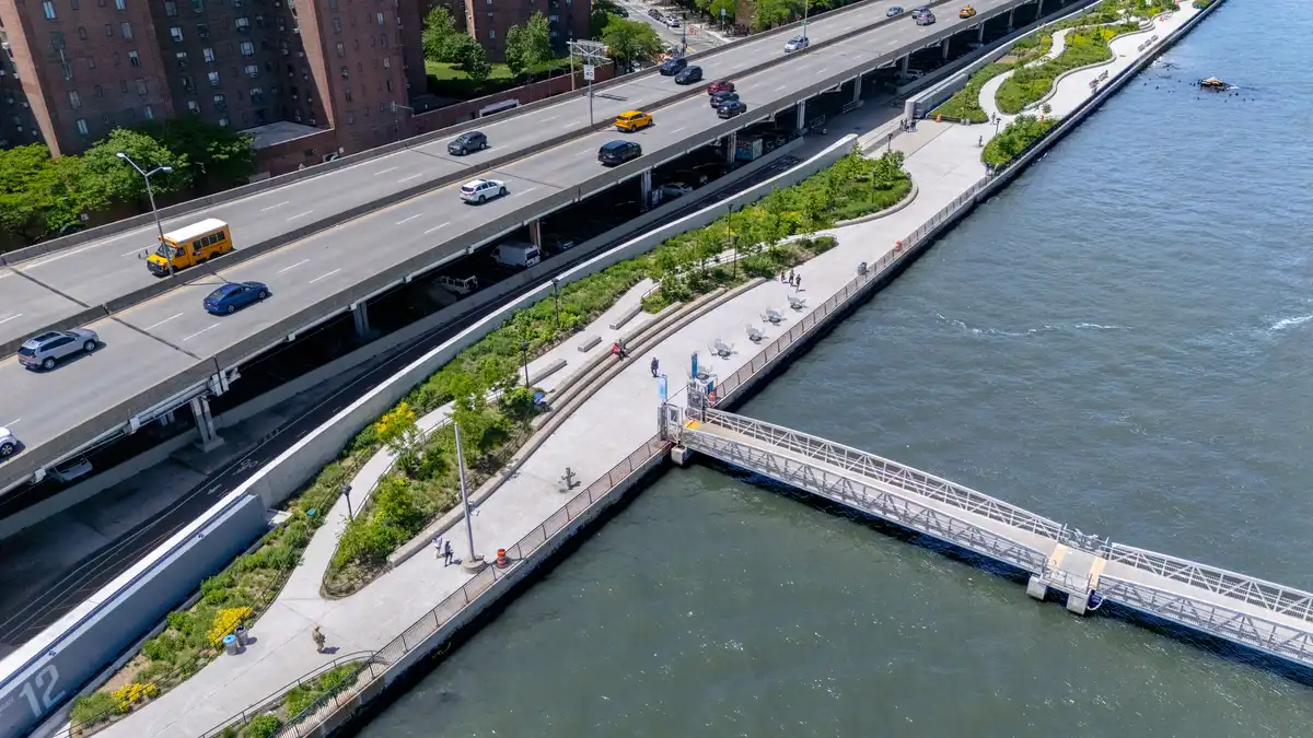 East Side Coastal Resiliency park, NYC flood defence design, ESCR New York City architecture photos