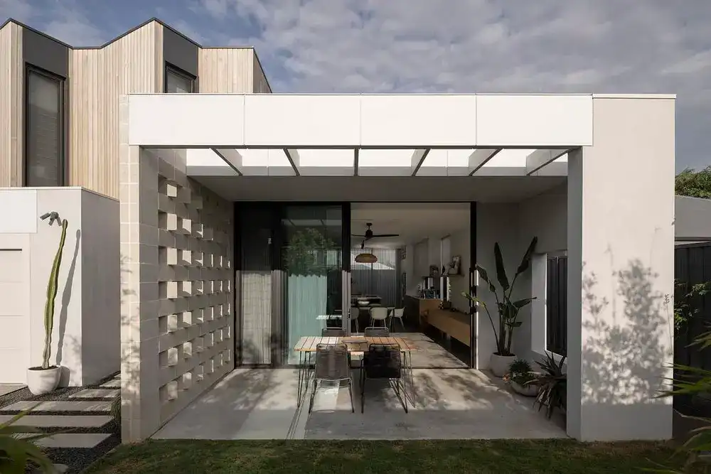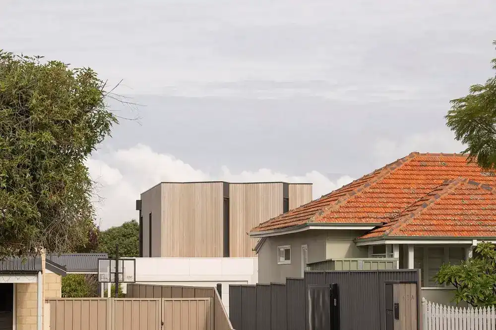 Built on a very tight budget, this infill development doesn’t feel cheap. Working to a ‘less is more’ approach, the reduced floor area allowed for a bigger garden and the budget to be stretched further. Local Australian timber and WA made masonry blocks were the main features of the home, with ivory render used elsewhere to keep costs down.