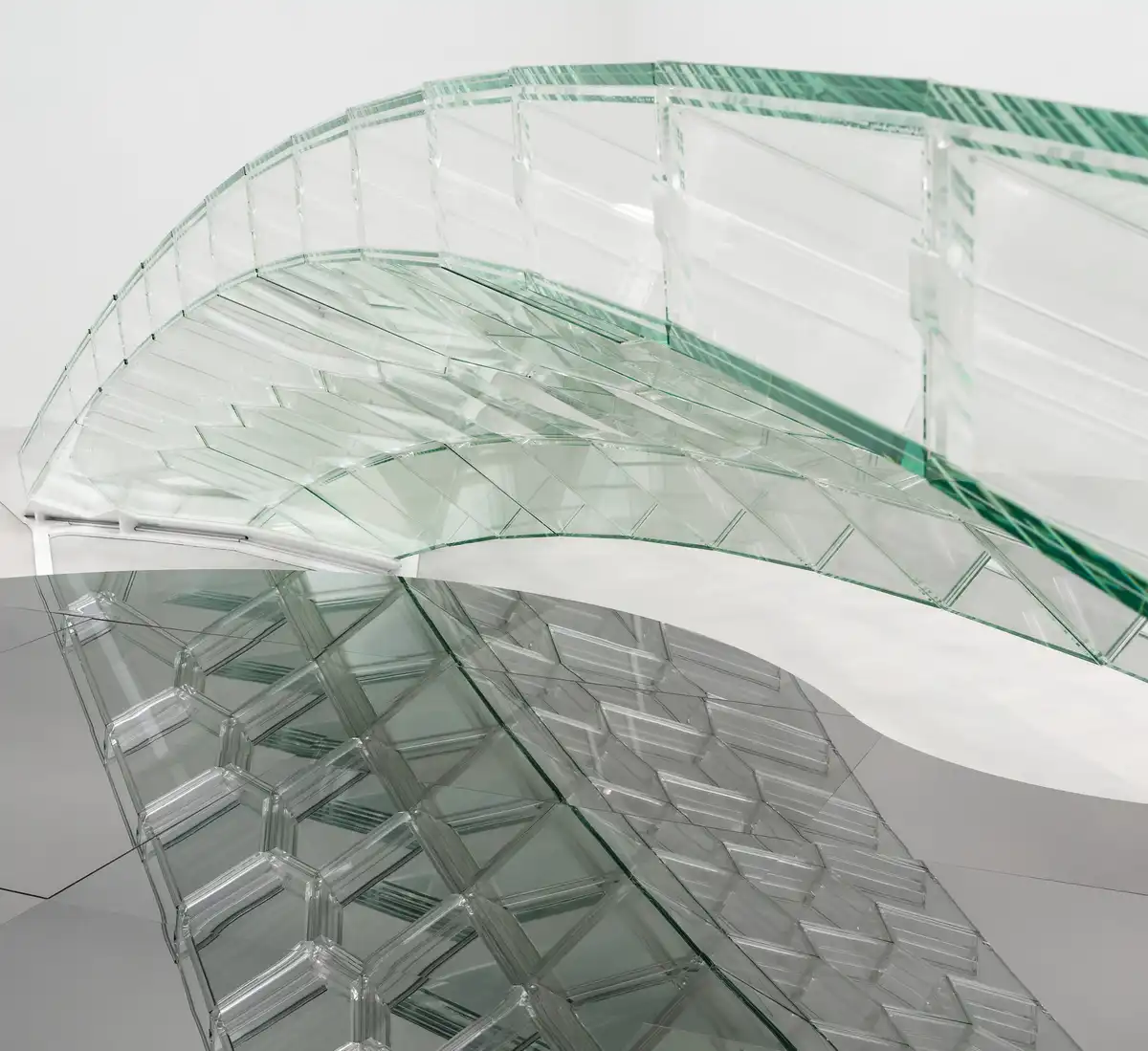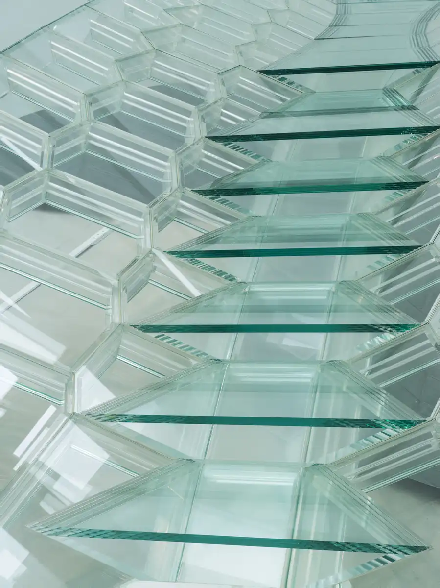 The project is based on a 10-meter experimental glass structure built at the Corning Museum of Glass. The structure is a demonstration of a research project at Polyhedral Structures Laboratory (PSL) at the University of Pennsylvania, led by Prof. Masoud Akbarzadeh, Prof. Joseph Robert Yost at Villanova University, Prof. Damon Bolhassani at the City College of New York, and Prof. Jens Schnieder at Darmstadt University. It is made entirely of modular glass elements that support weight through their shape rather than their mass.