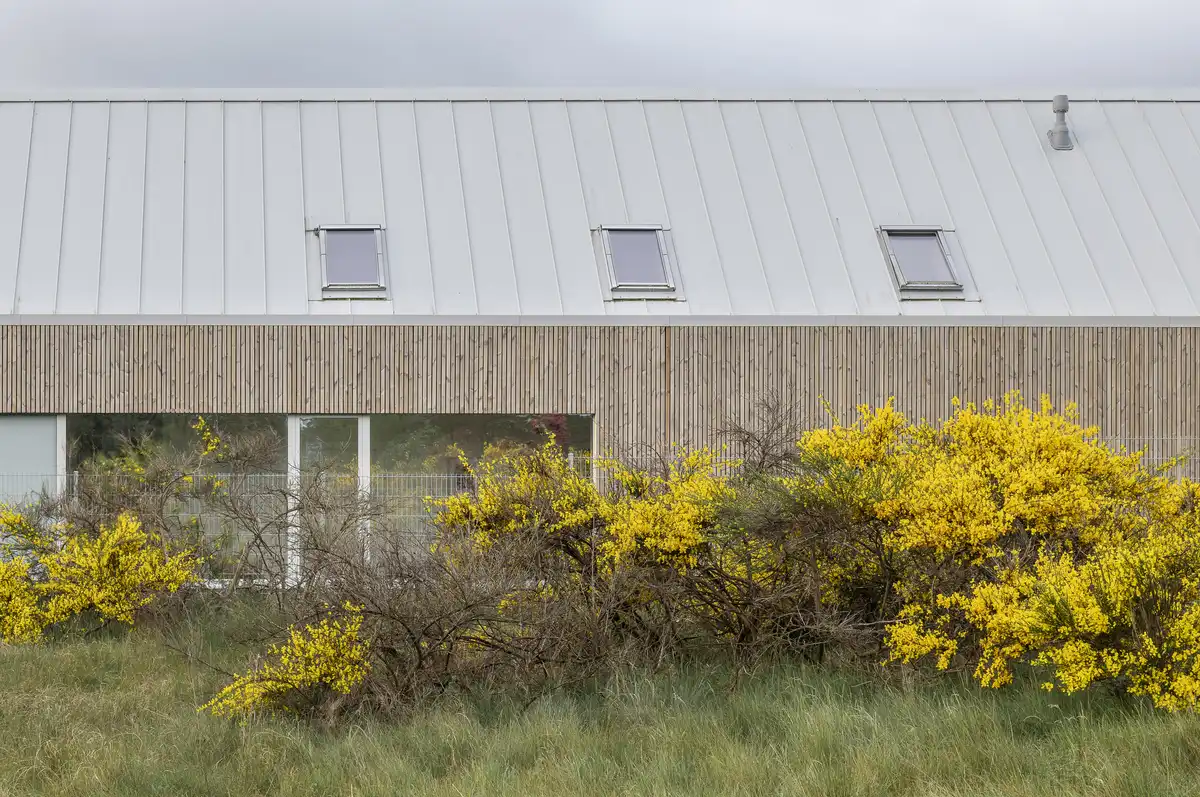 Natural materials dominate throughout. The use of spruce, concrete, metal and granite creates a continuity between the building and its surroundings. Inside, a muted colour palette complements the raw, coastal climate: soft greys, gentle browns and the natural texture of timber contribute to a calm atmosphere.