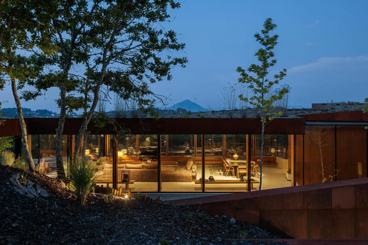 Sustainability and environmental performance were central to the design strategy. Features such as extensive green roofs, rainwater harvesting systems, photovoltaic panels, deciduous vegetation for passive shading, strategically planted trees, and integrated home automation contribute to a highly energy-efficient and environmentally responsive dwelling.