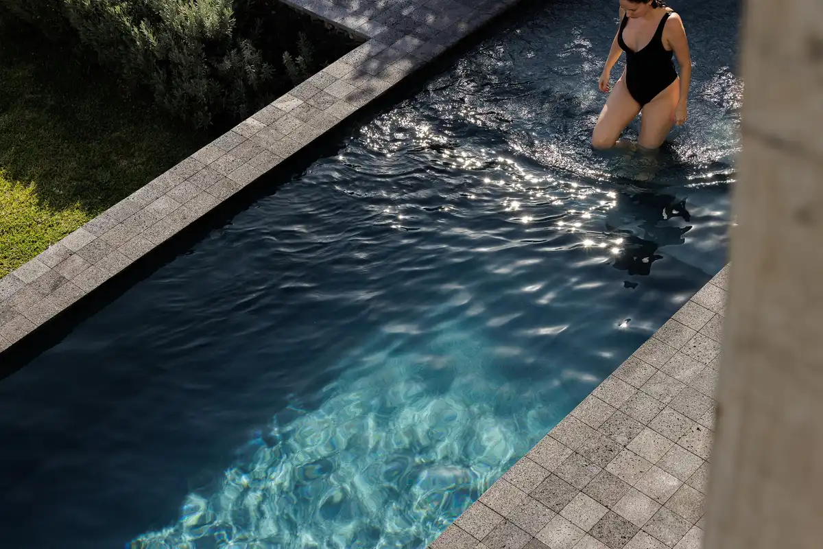 On the southern side, the house opens to the sea—but without showing off. The views are always there, discreetly filtered through the structure. From the natural pools in front, the volume appears deaf and silent, only stone, light and shadow.