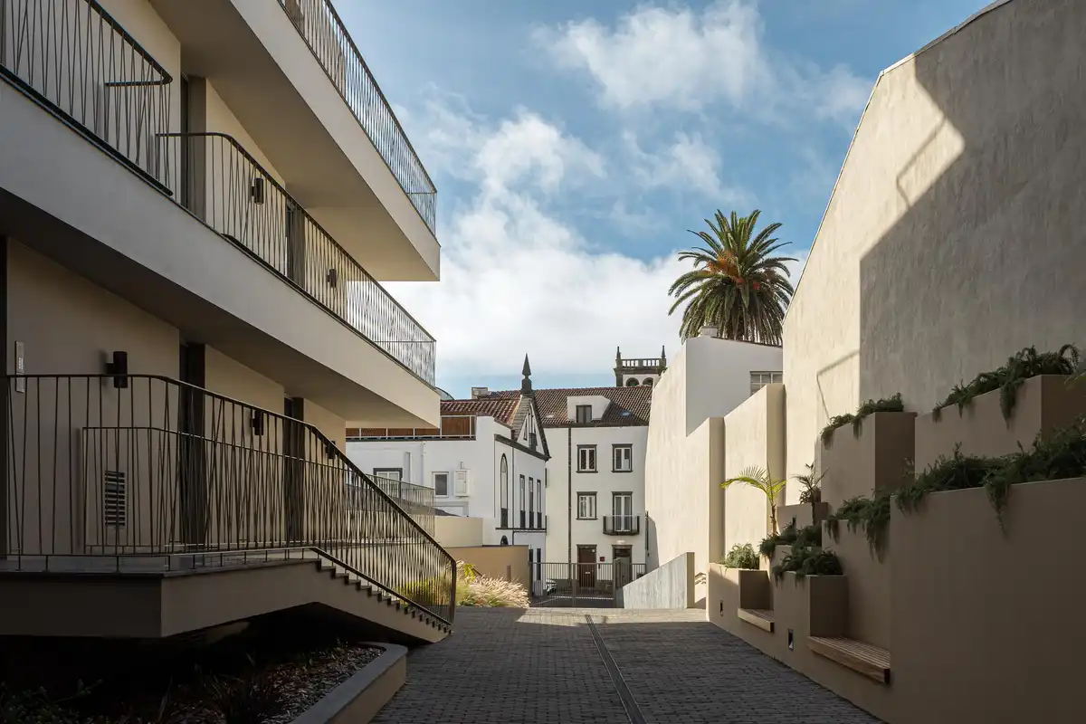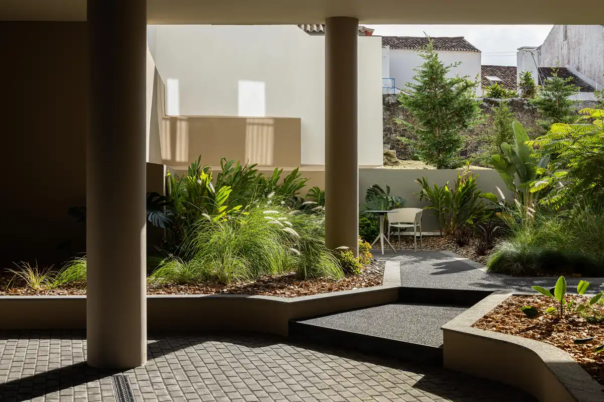 Ernesto do Canto is inward-looking. It establishes interior garden spaces and areas for living and circulation, embodying the concept of inhabiting exterior space beyond the limits of the private dwelling. The carefully defined threshold between the building and the marginal plane grants the project an urban dimension appropriate to its delicate urban context. The intentional spatial decompression introduced by the Ernesto do Canto concept within the dense fabric of São Pedro, in Ponta Delgada, generates a “harmonious disruption” between the pre-existing urban fabric and a renewed way of inhabiting the city.
