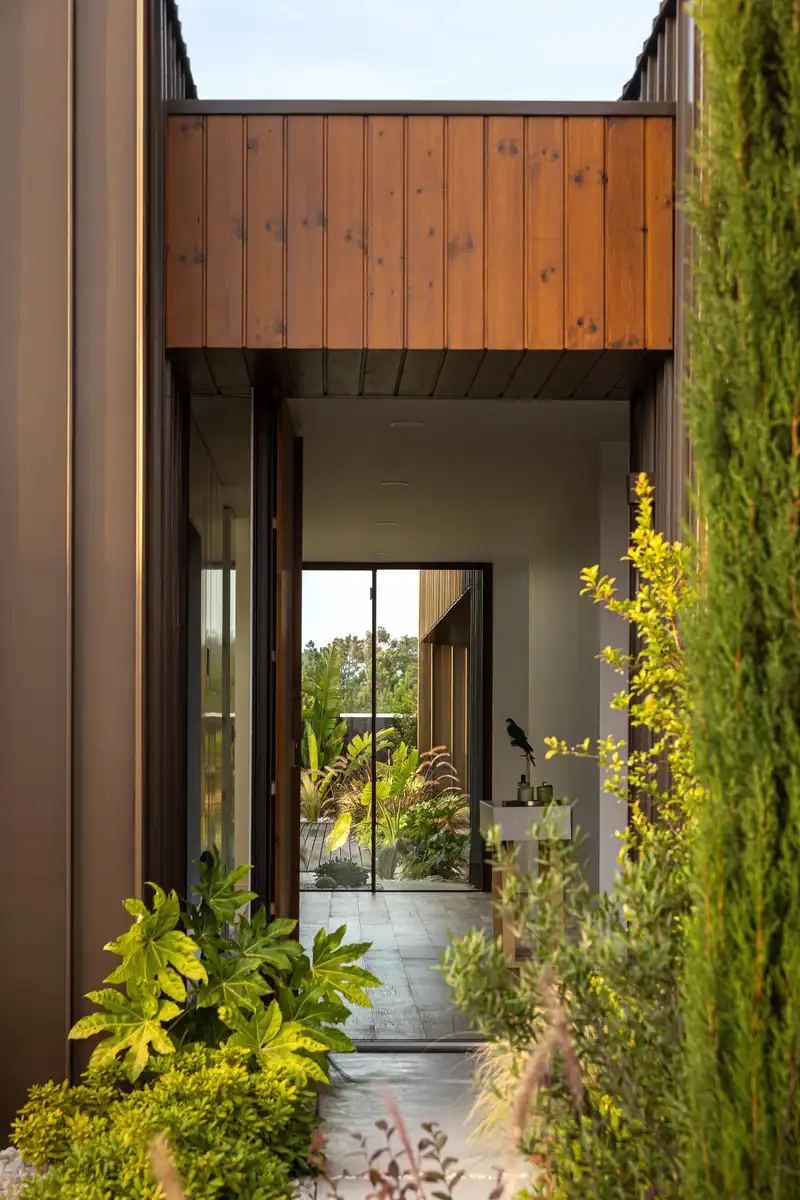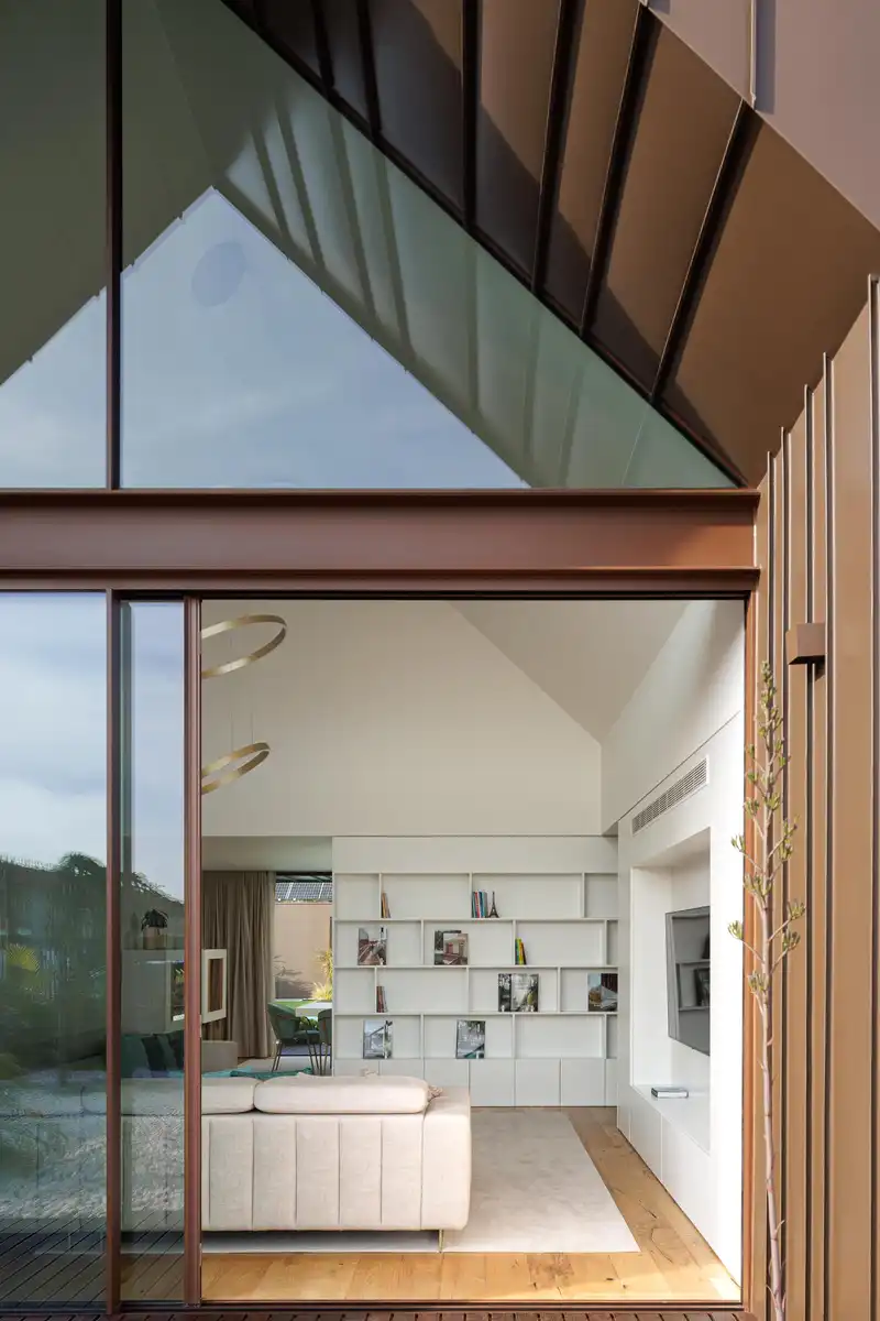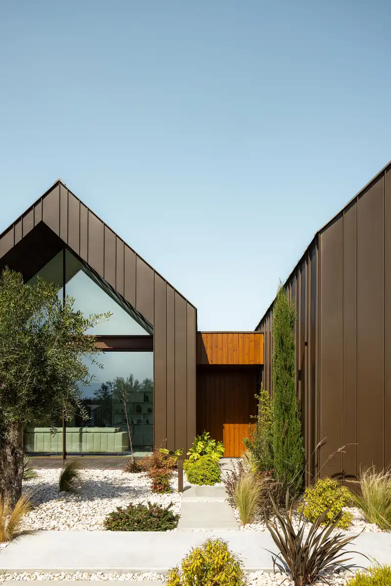 Quanto mais para o interior do terreno mais privado e reservado é o espaço. A composição dos volumes e a suas aberturas para o exterior proporcionam ao seu interior uma luminosidade controlada e um prolongamento do espaço interior para o exterior. A sua forma e materialidade pretendem personificar as construções típicas desta zona.