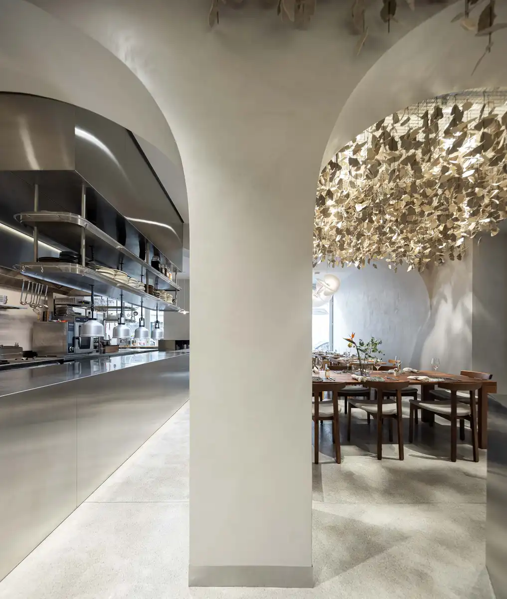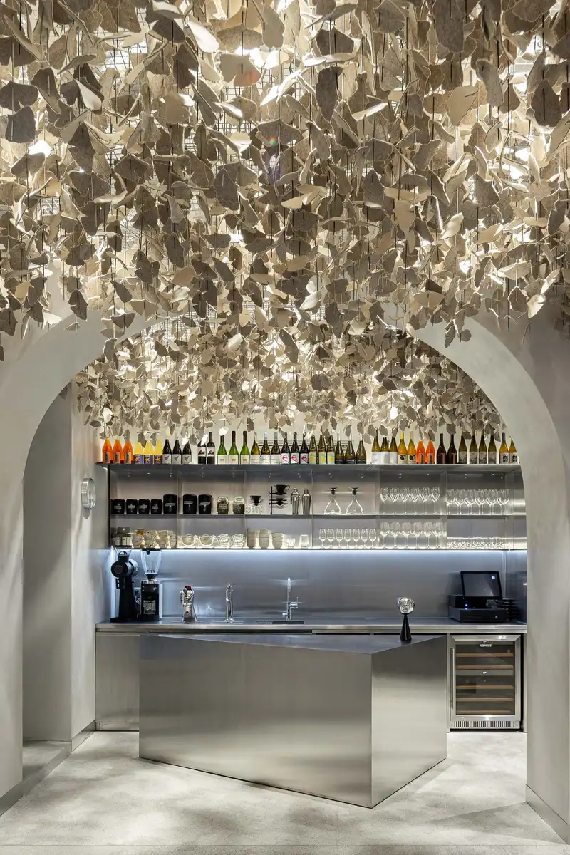 The resulting atmosphere is one of quiet elegance, where simplicity enhances the overall spatial experience, concealing technical complexity while embracing the owners’ dining concept — combining bakery, kitchen, bar, and café.