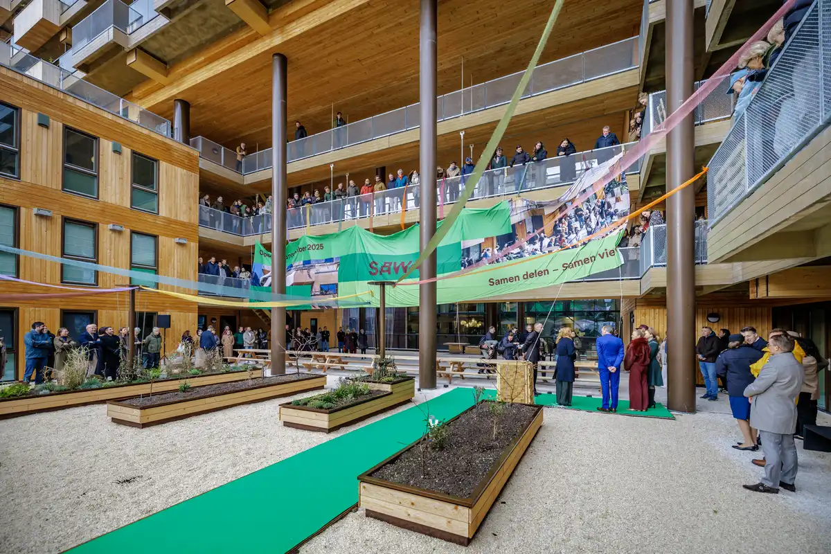 During the opening programme, SAWA was introduced to Queen Máxima. Residents, designers, ecologists and developers spoke about how the building came to be and the impact it has on daily life. One of the residents took the stage with her young daughter to share their personal story — a moment that resonated strongly with everyone present.