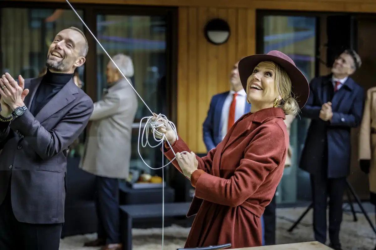 The official opening followed. Queen Máxima unveiled a giant picnic table together with the residents — a new centrepiece on the communal deck that will encourage social interaction. She then was given a guided tour of the building, speaking with residents and project partners about the unique process behind SAWA.