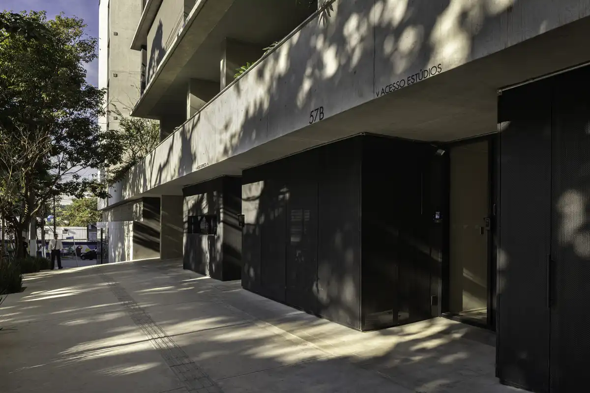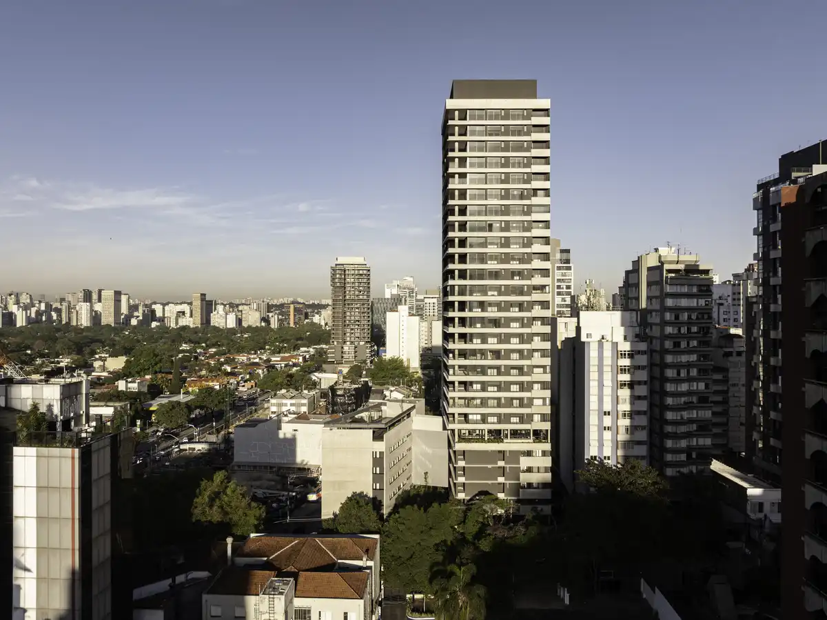 The complex is defined by two blocks of different heights: facing Pinheiros Street, the commercial one includes retail venues on the ground floor and five floors of offices in modular units. The residential tower, also accessible from Francisco Leitão Street, includes three distinct types of 2 and 3-bedroom apartments, in addition to four floors dedicated to studio apartments.