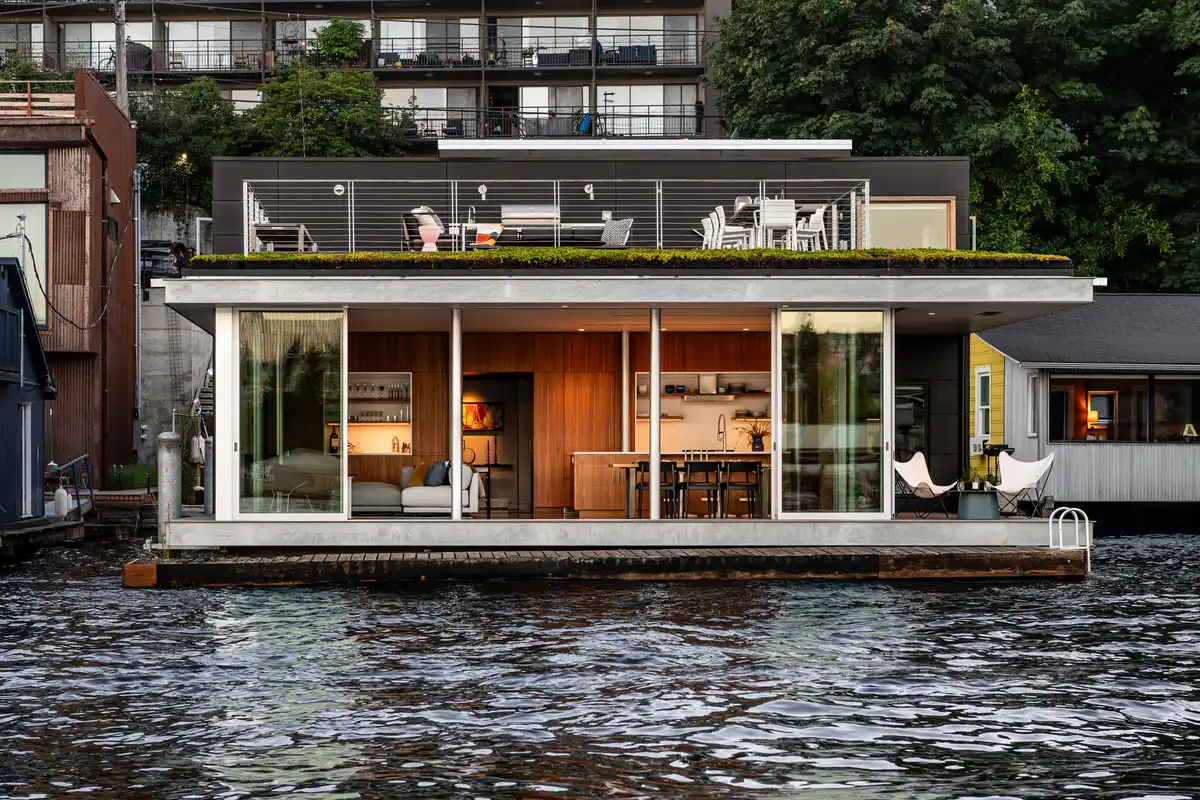 Seattle floating home on Portage Bay, Northwest house, Dyna Builders Washington property, USA architecture