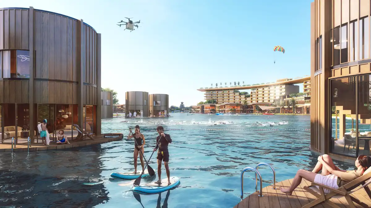 A zero-carbon waterfront resort brings world-class hospitality, water sports, and sustainable design to the Yangtze River Delta