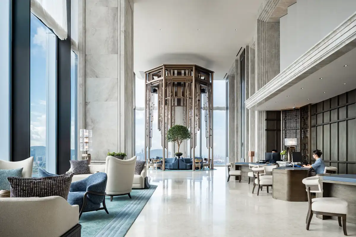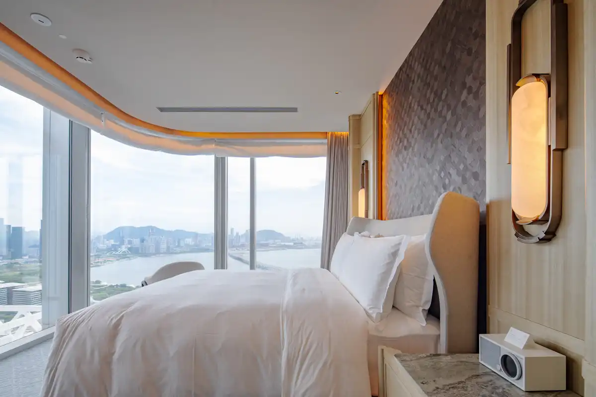 Officially opened in 2025, the St. Regis Shenzhen Bao’an occupies the upper floors of the OCT Ruiwan Tower. As Marriott International’s milestone 600th hotel in Greater China and the first St. Regis in Qianhai Bay, it offers an unparalleled hospitality experience. The hotel features 289 luxurious rooms with floor-to-ceiling windows, providing stunning views of Qianhai Bay and the vibrant cityscape below.