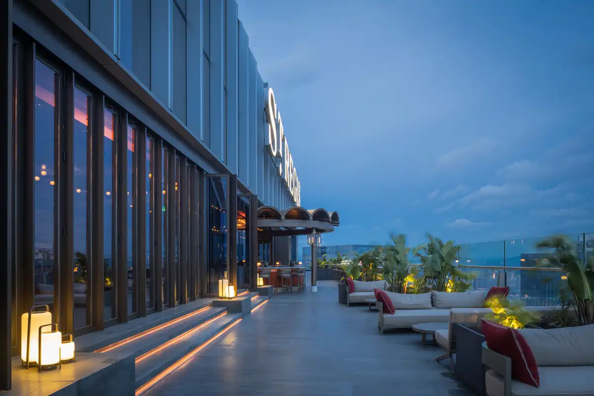Guests can enjoy world-class amenities, including a 215 m sky lounge, a cantilevered sky garden, all-day dining, a fitness centre, a swimming pool, and a spa. A 770 sq m ballroom with a kinetic façade system and natural lighting, located on the 3rd floor of the podium, is designed to accommodate a variety of events and activities.
