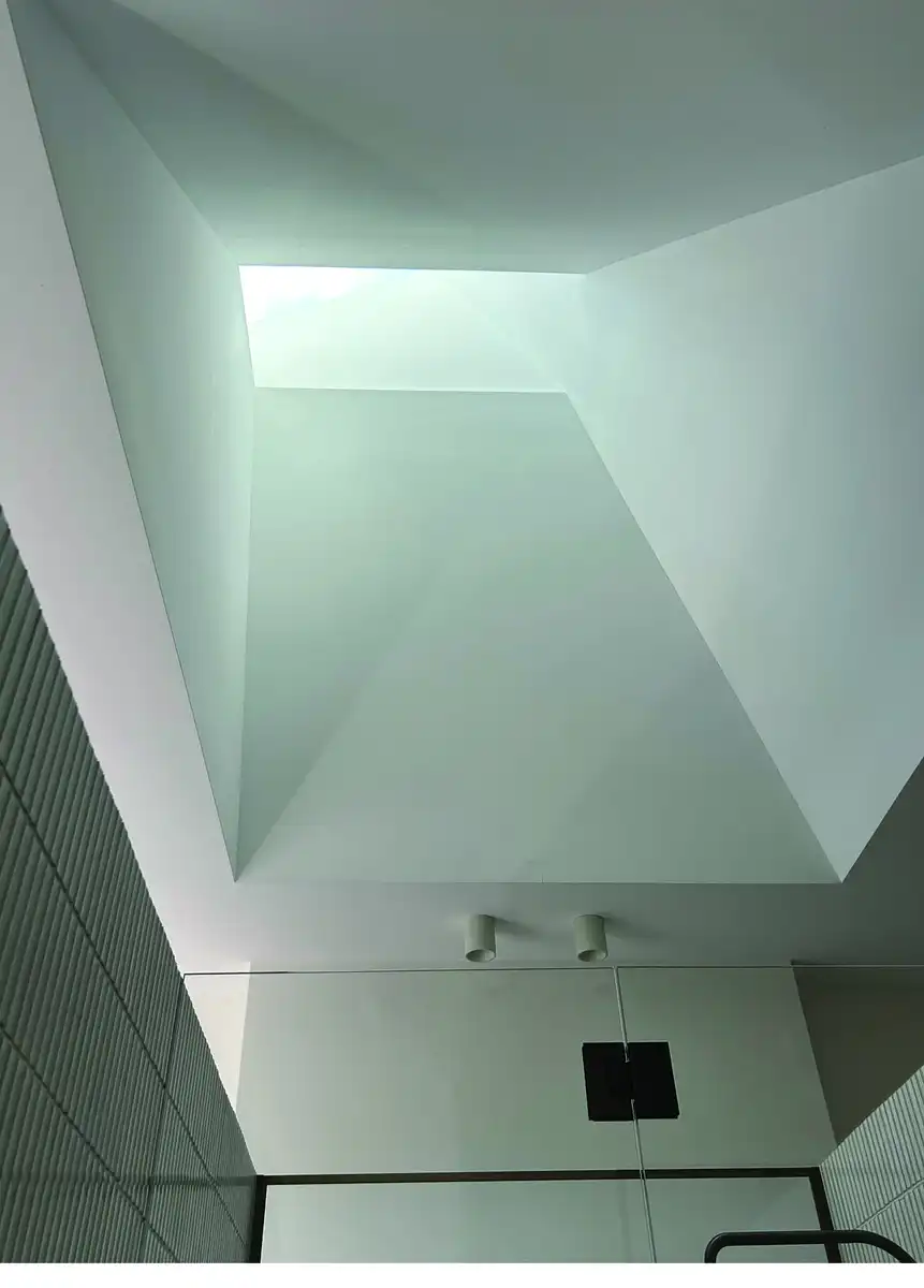 The addition is a highly contemporary representation of the single storey rear kitchen add-on that was typical of buildings of the era. We have extrapolated this low pitched ceiling ‘lean-to’ with a dramatic soaring ceiling and glazed openings resulting in a light filled, striking volume.