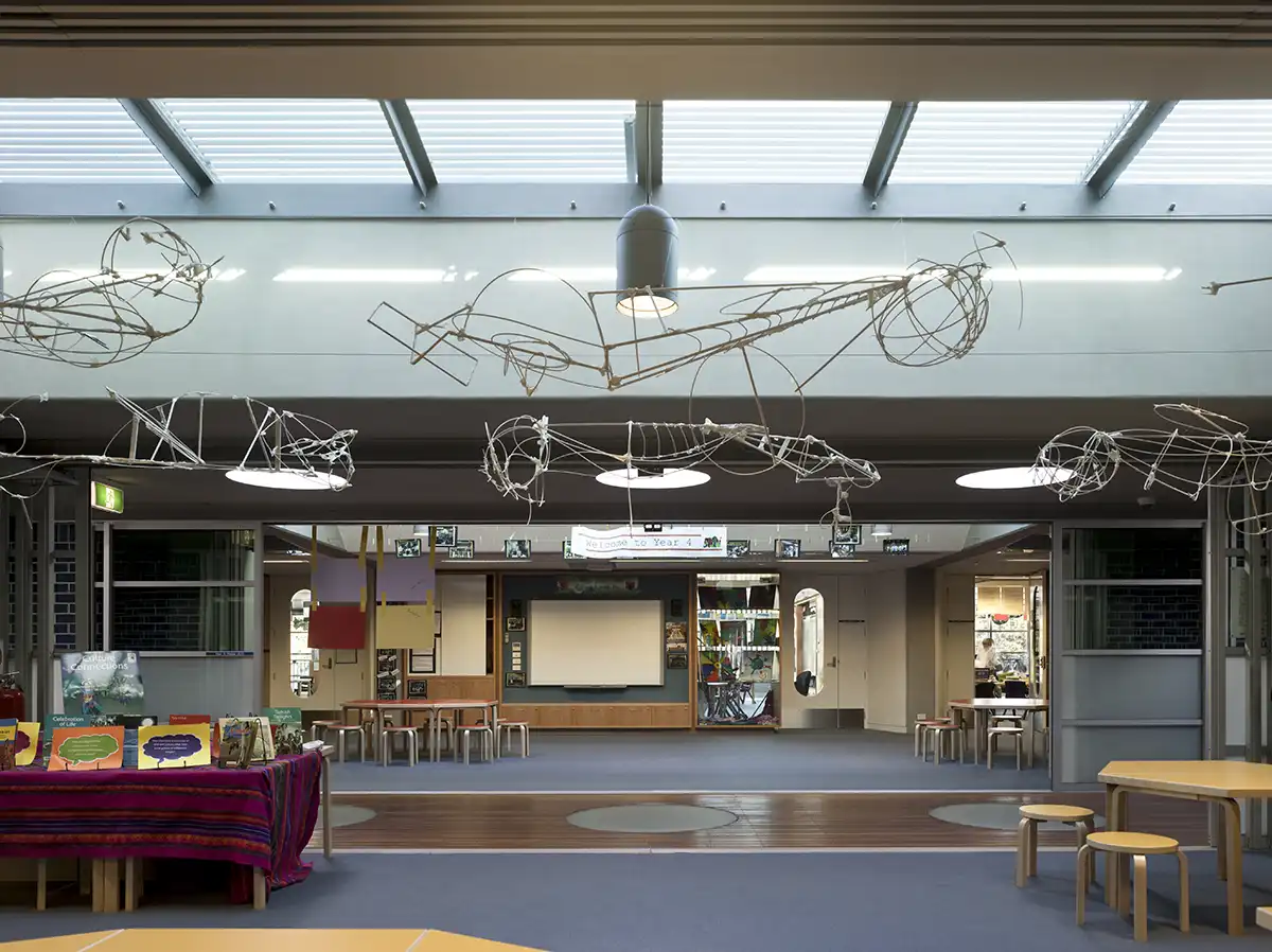 To underpin the school’s ambition for long-term construction materials which would weather with patina, Tzannes developed a strategy for the selection of materials, and details were developed accordingly. The organisation of the plan with open flowing spaces stimulates children to free expressive experiences and creative thinking.