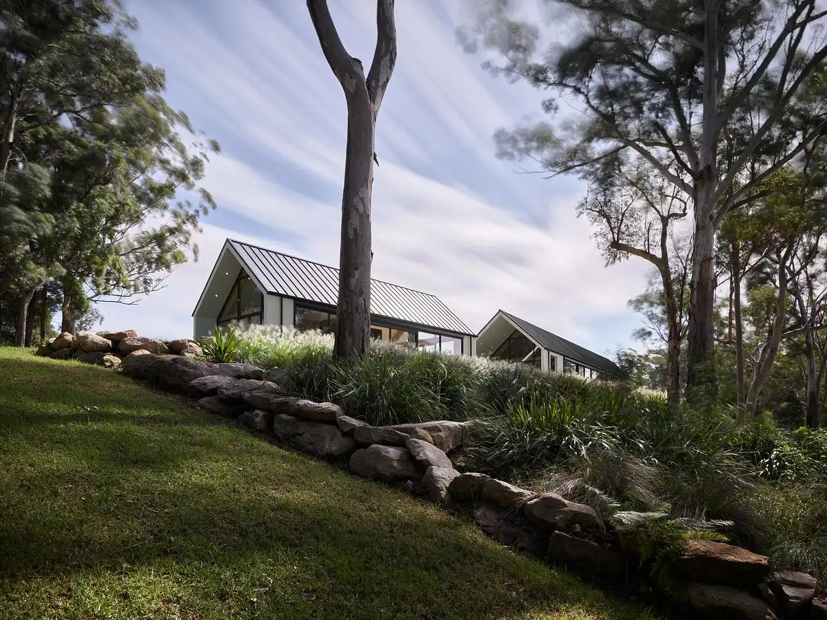 Its bushfire-responsive design ensures resilience without compromising openness or liveability, protective ‘Barn forms’, skewed so ends capture Northern light but can strongly resist any bushfire event from the valley below.
