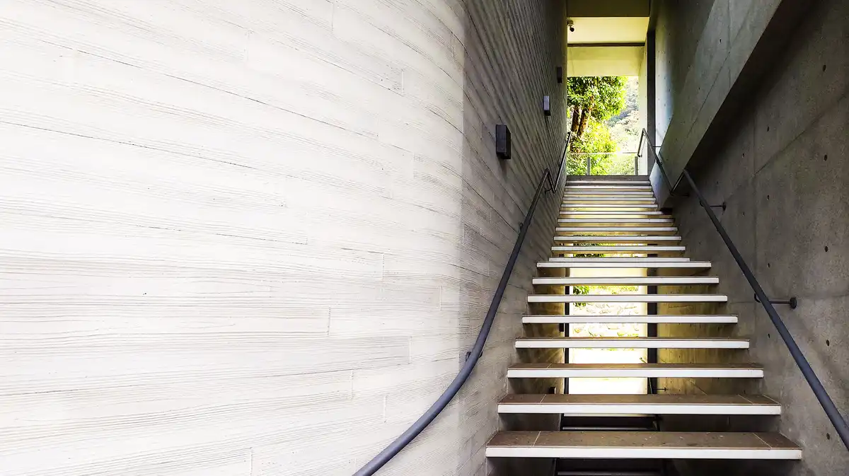 To preserve uninterrupted views, the stair is conceived as a vertical contour—an open, permeable structure that filters light, air, and scenery. The porous steps frame shadows and greenery as one moves, turning circulation into a continuous act of viewing.