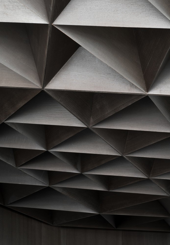 “Unique Store Fixtures created a faceted ceiling design with wood veneer, and the resulting geometry feels like cut crystal hanging above diners, with the materials used providing an intimacy by their subtle detailing,” says Shawna Seligman of gh3*, who served as the project architect for Arthur’s. “Each panel was hand-crafted in-house by Unique to the exacting finishes and specifications as per our design. We had a great experience working with Unique.”